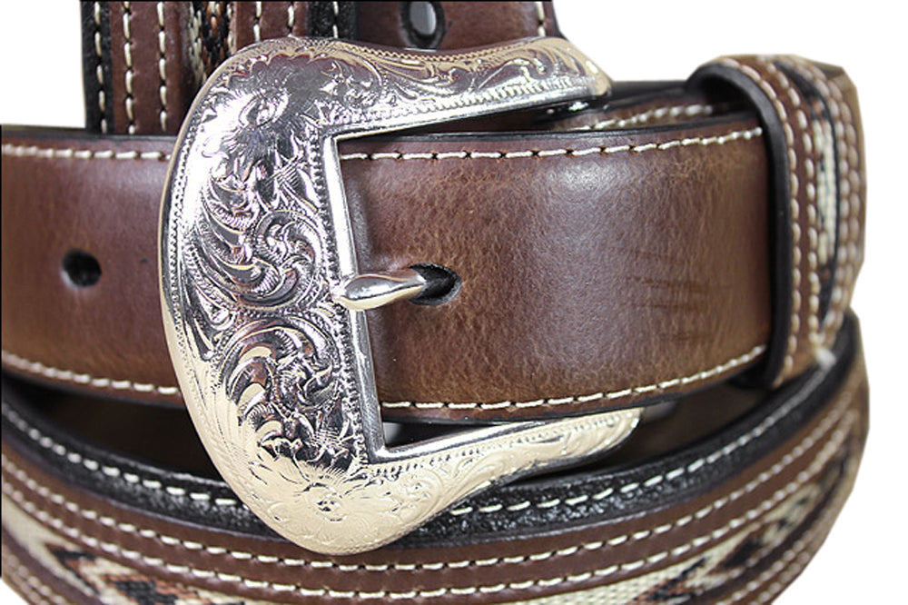 Western Fabric Inset Belt Men Black Brown Leather 32-46 Ines