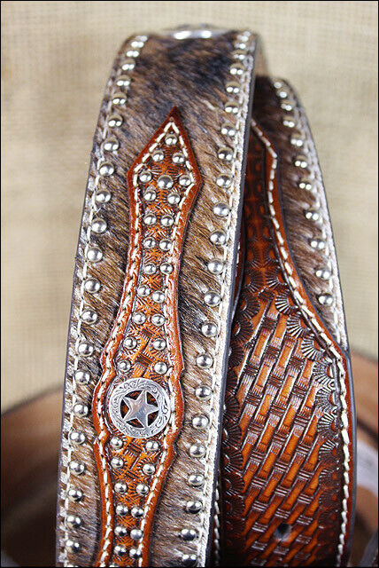 Western Cowboy Belt Nocona Hair Star Concho Brown Leather 34-46 Ines