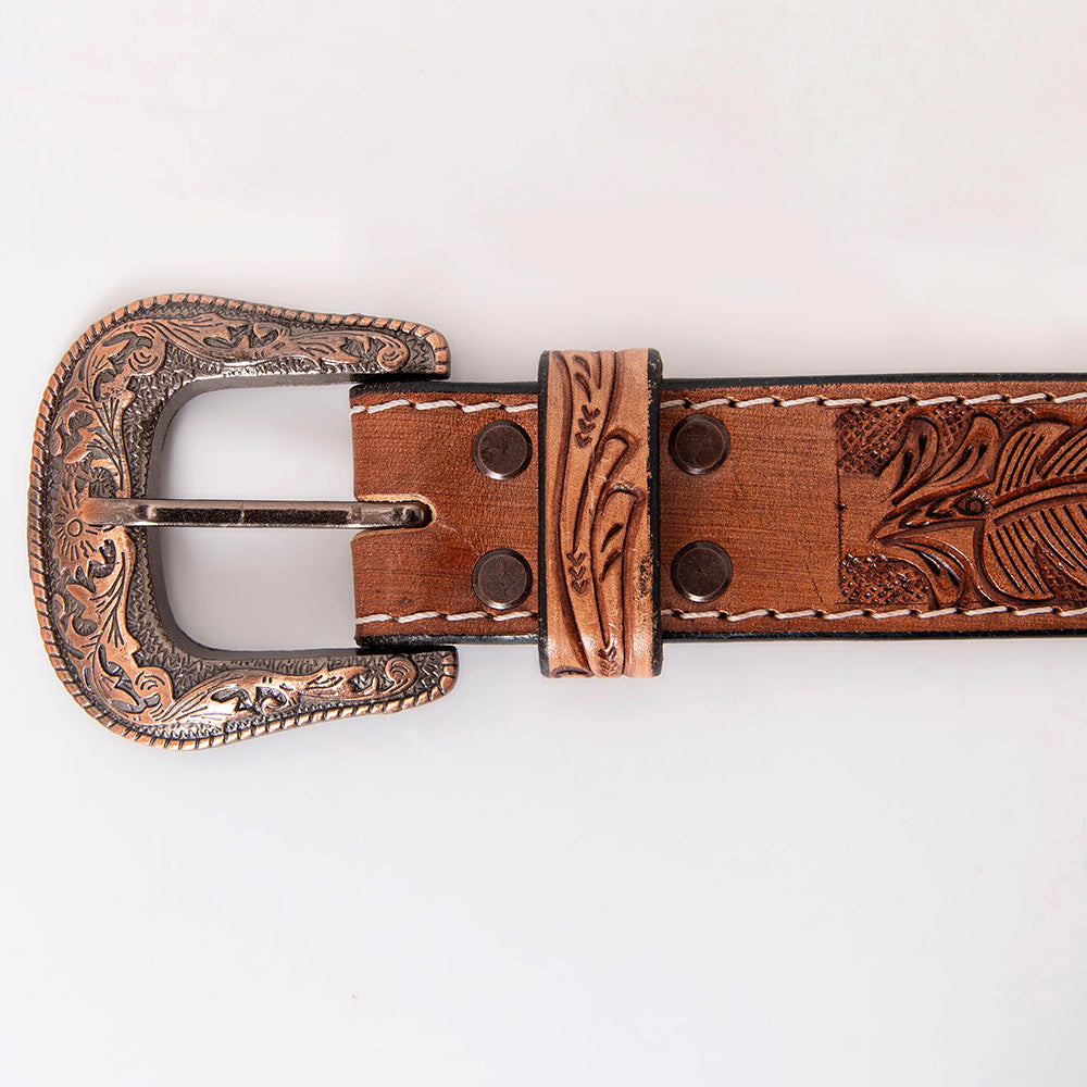 HILASON Western Genuine Leather Belt for Men Women Cowboy Cowgirl Handmade Unisex Full Grain Heavy Duty Tooled Beaded Belt