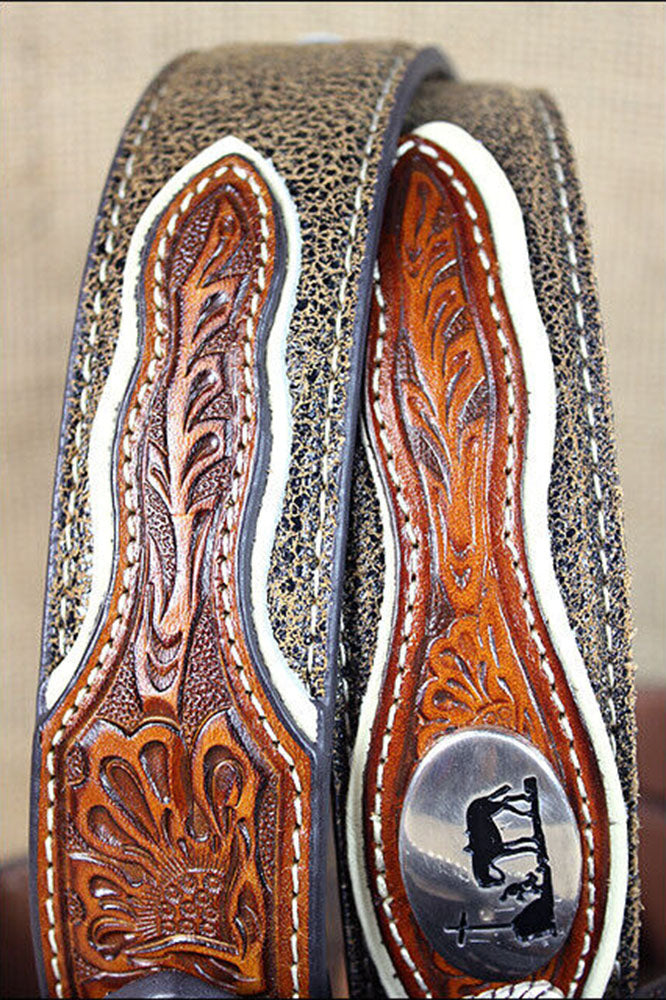 Nocona Western Mens Belt Leather Tooled Floral Contrast Stitching Tan