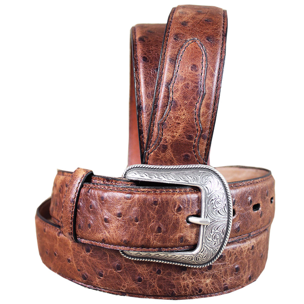 3D Mens Ostrich Print Leather Belt Removable Silver Buckle