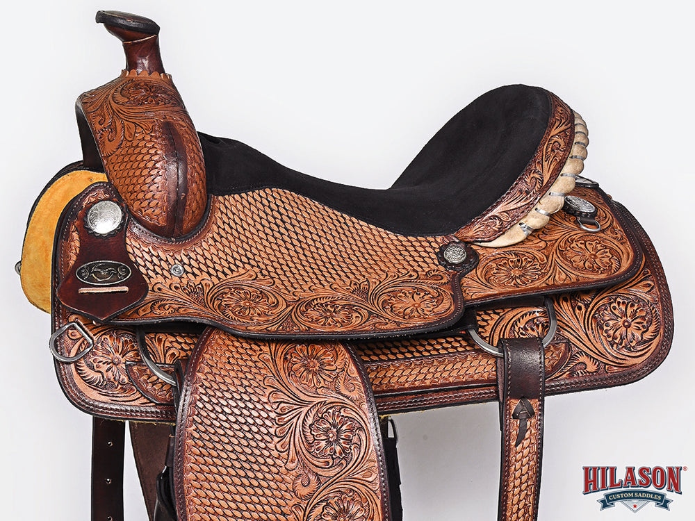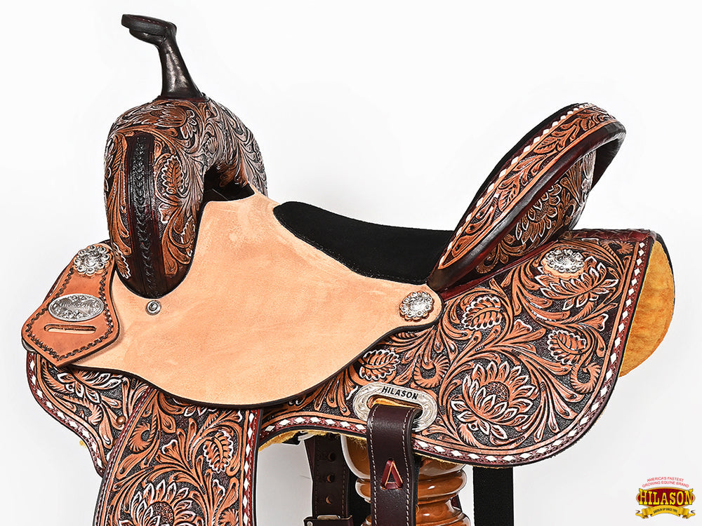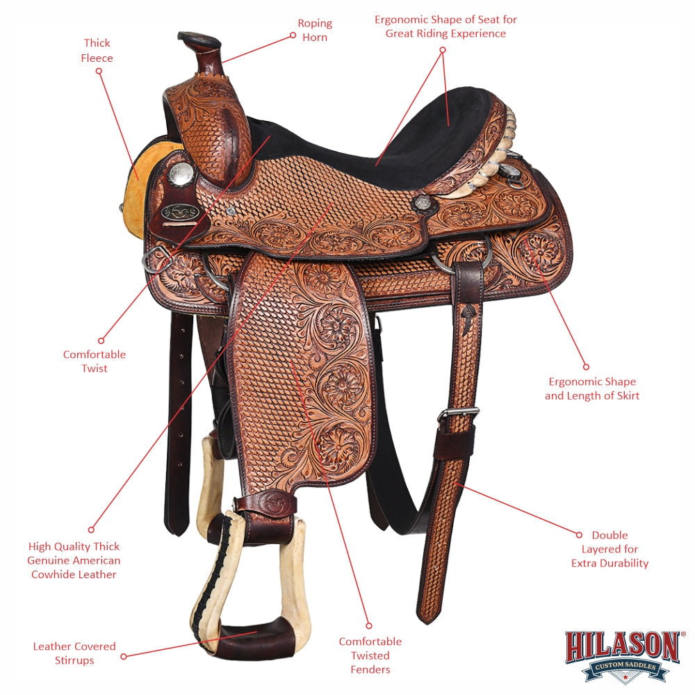 HILASON Western Horse Floral Ranch Roping American Leather Saddle Brown