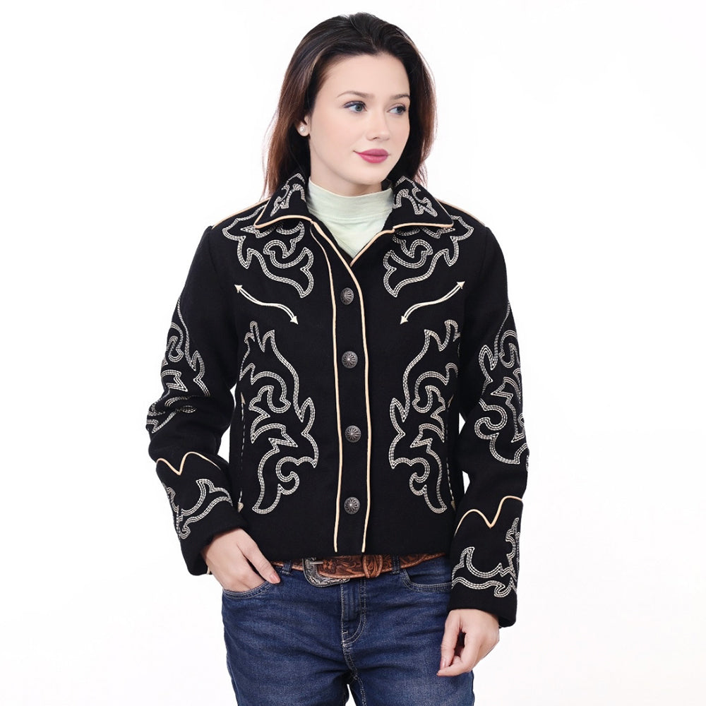 ADBZ049 Genuine leather Hand tooled hand carved Women 100% cotton Denim Blazer dress jacket ladies Girl