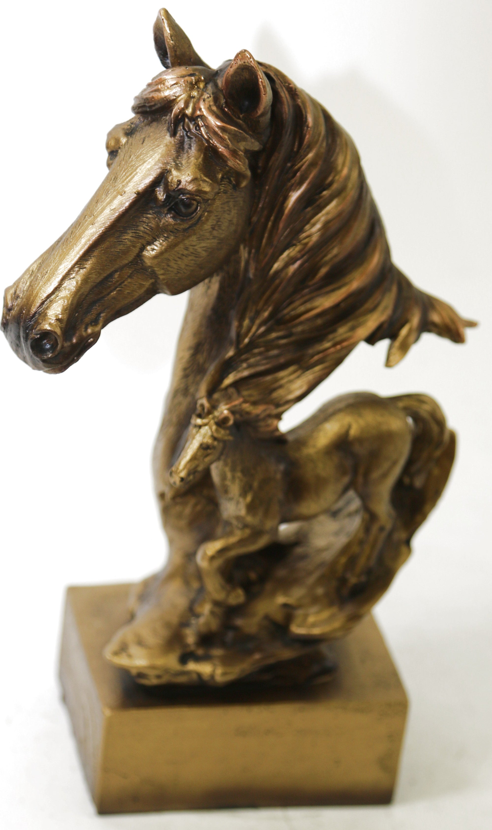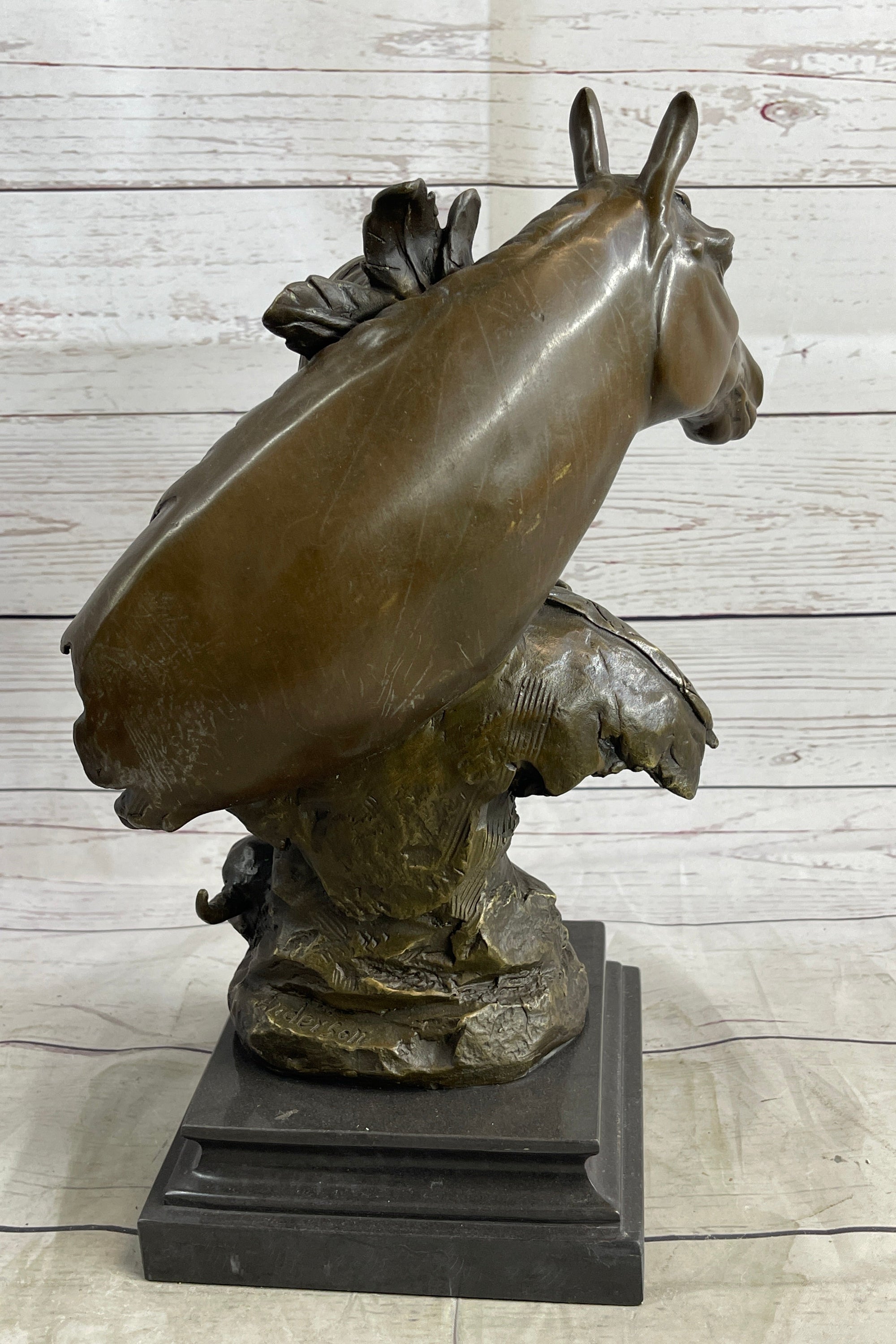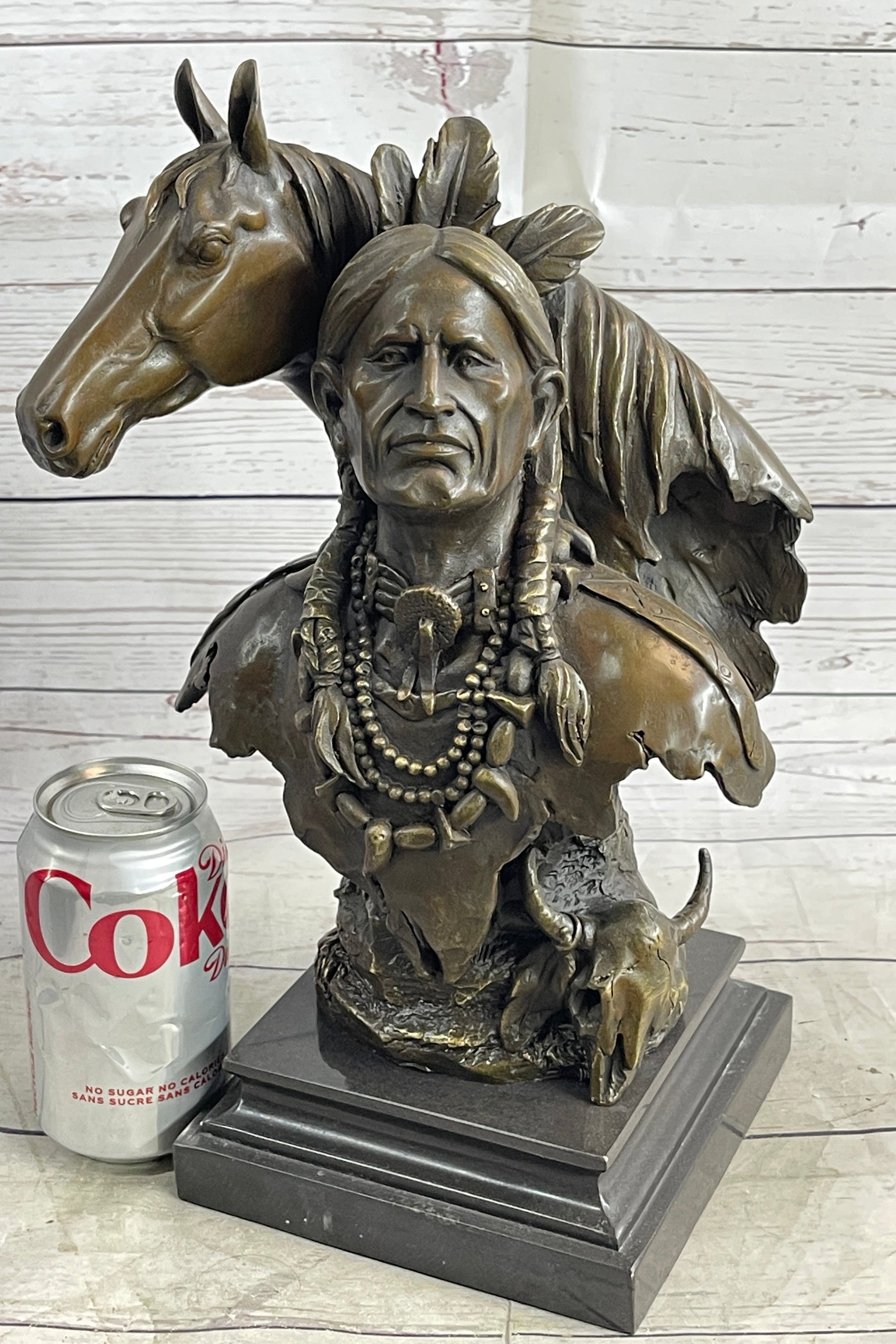 Native American Man & Horse Bronze Bust Statue Sculpture Western Art 14" x 10"