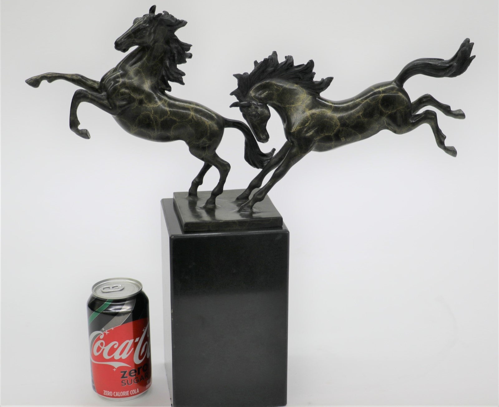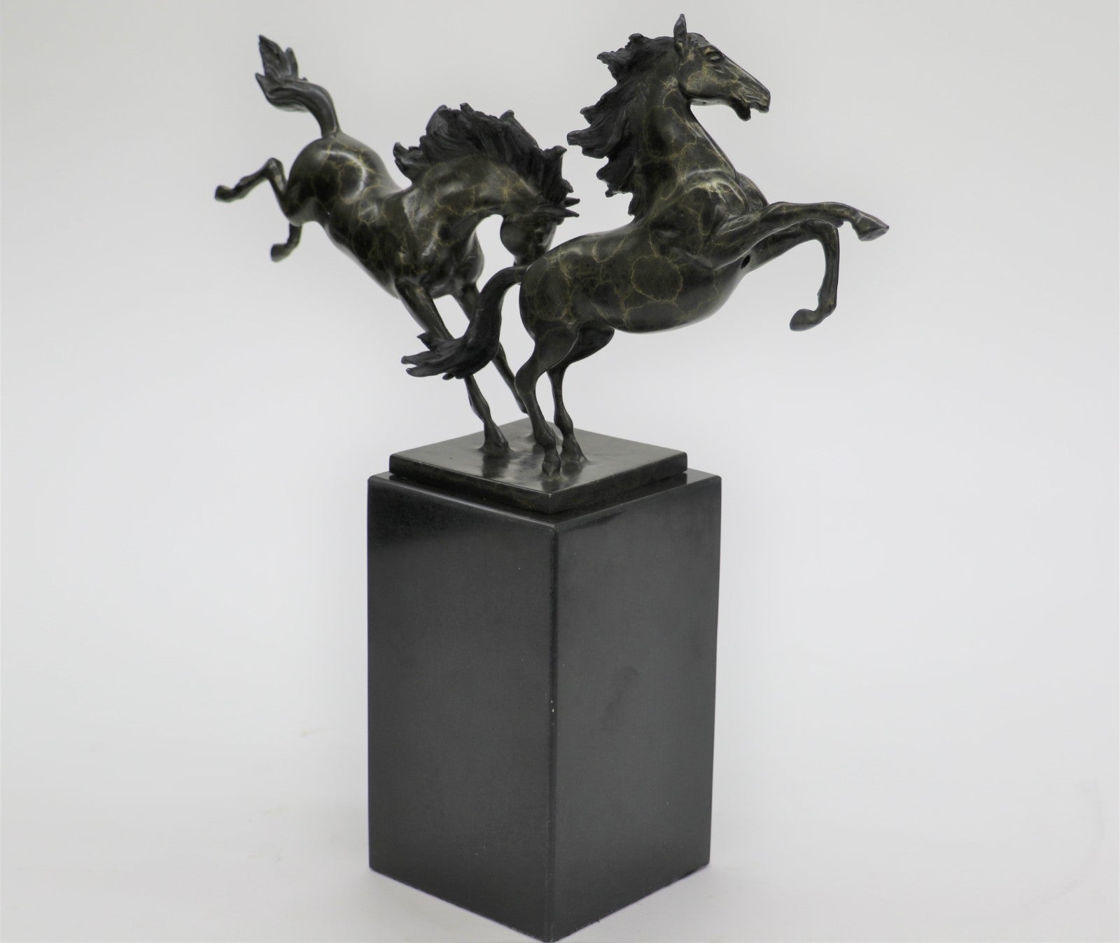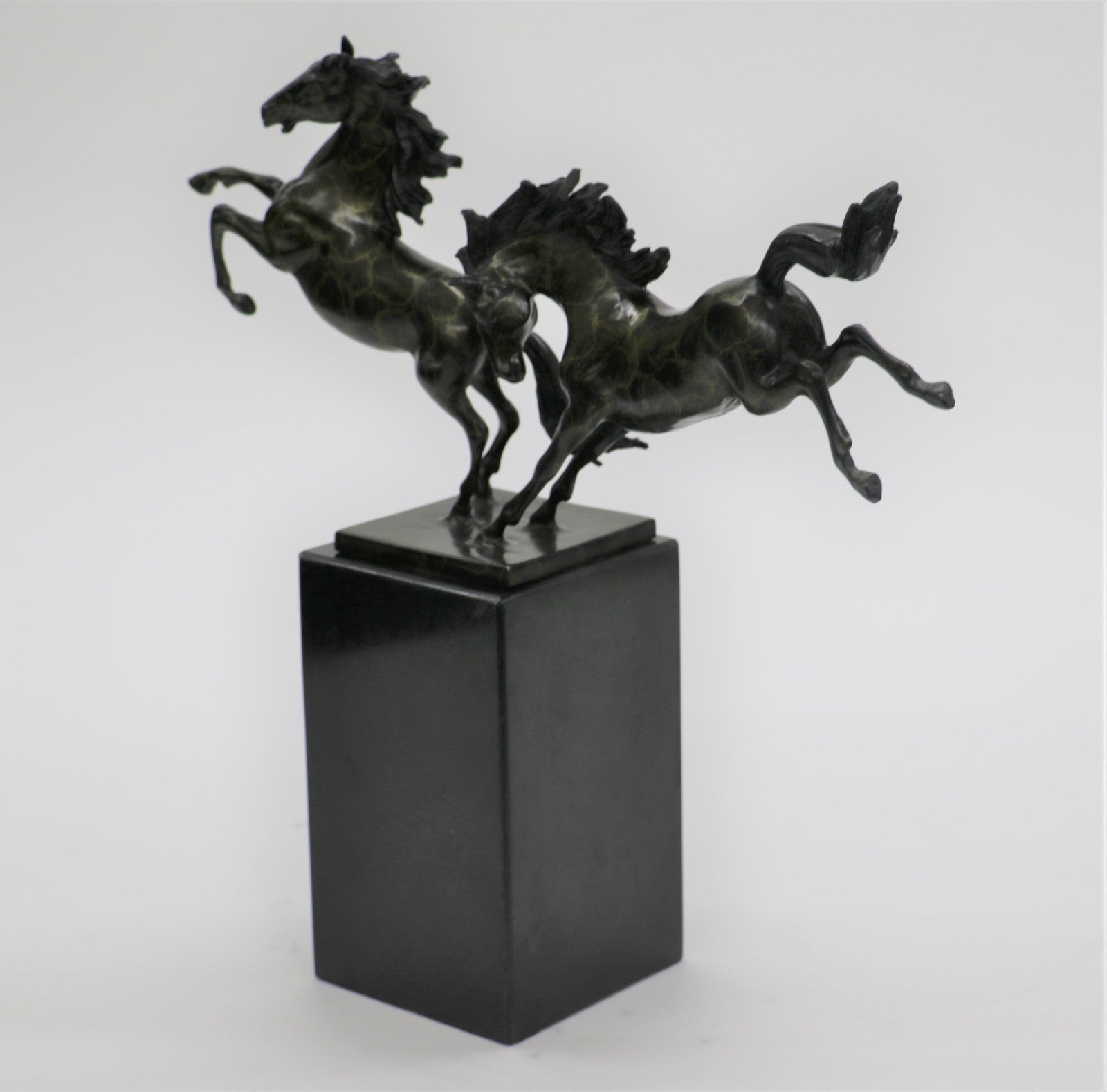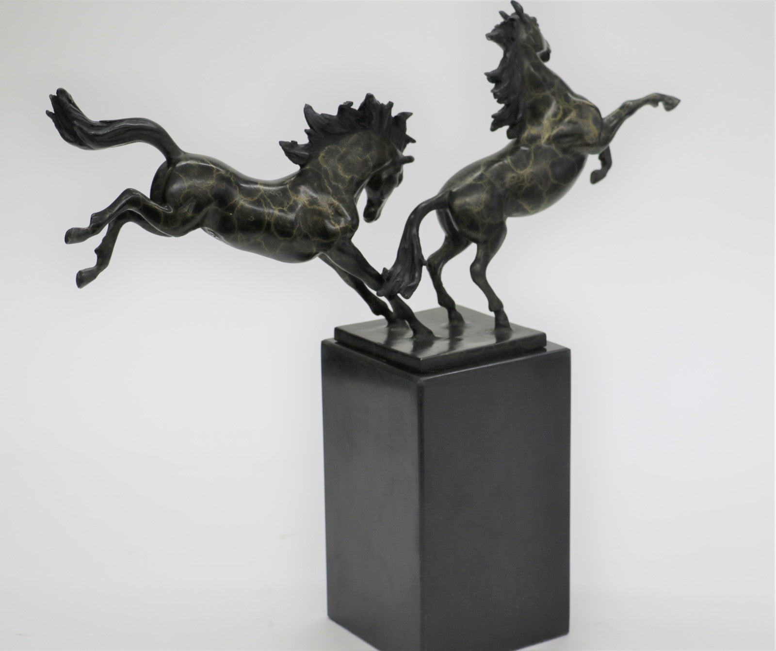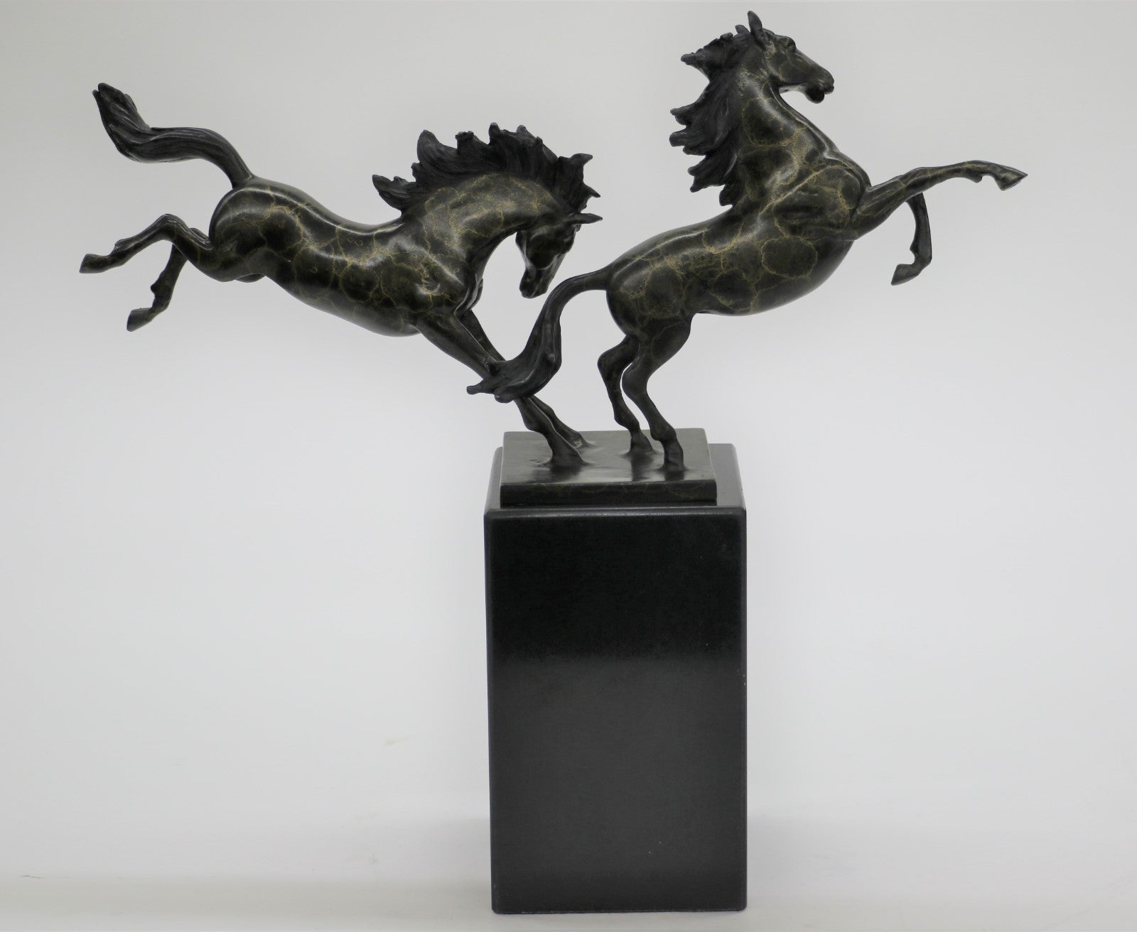 Dueling Stallion Horses Rearing Horse Bronze Statue Sculpture Decor Marble Base Original
