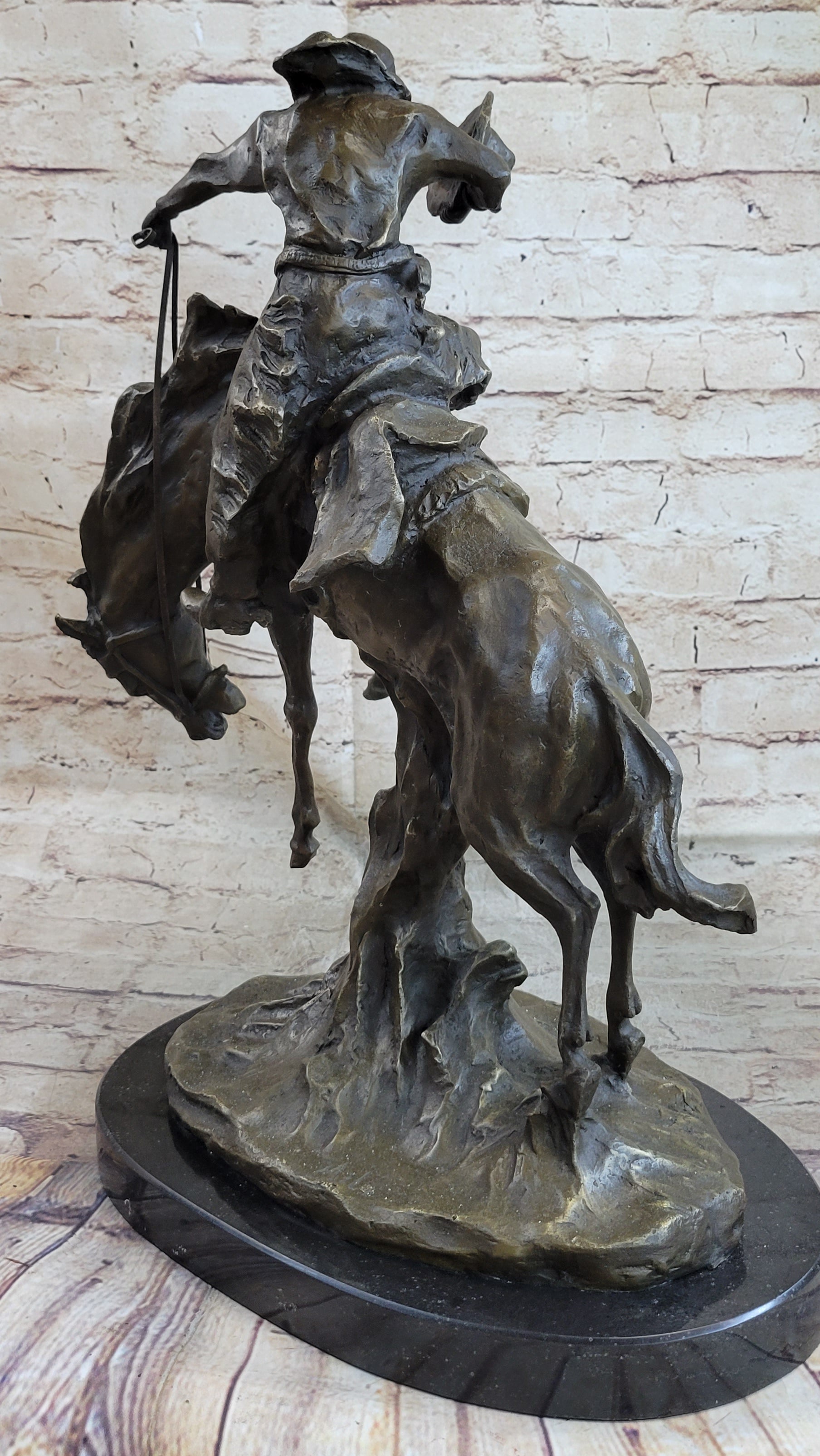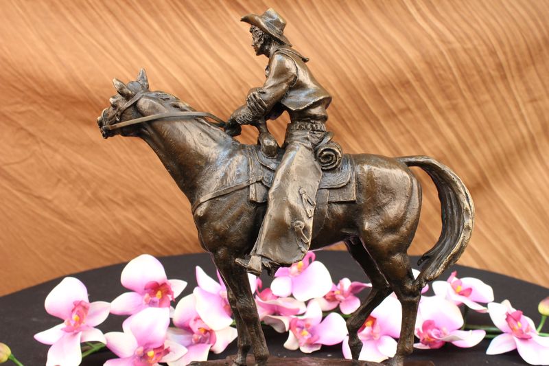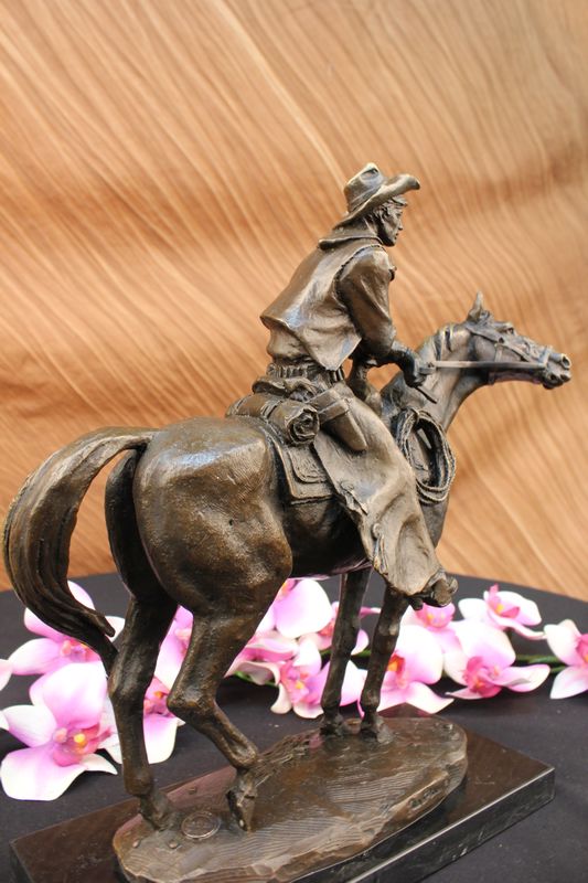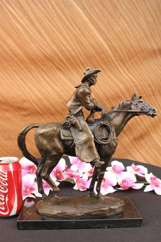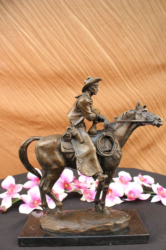 Frederic Remington Arizona Cowboy on Horse Art Deco Western Bronze Sculpture