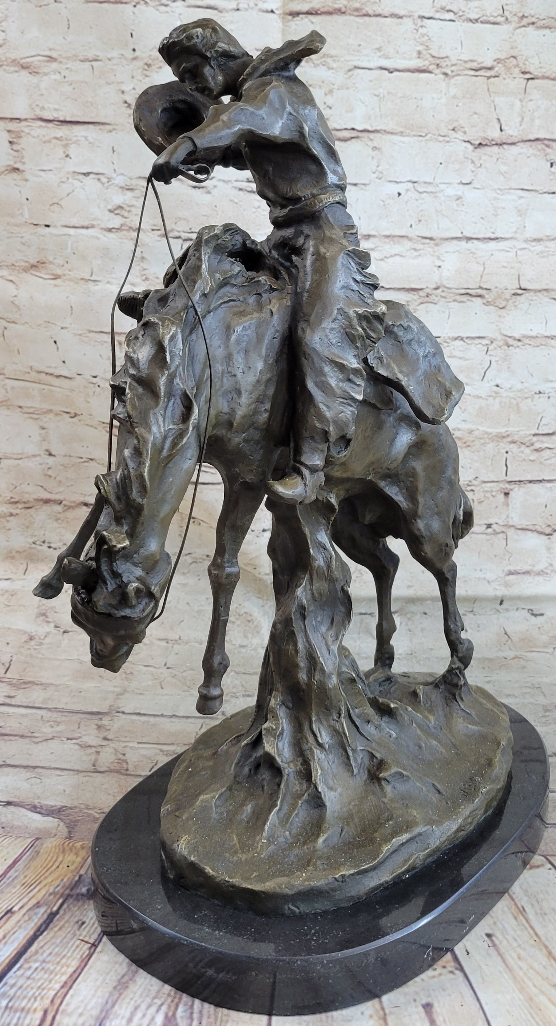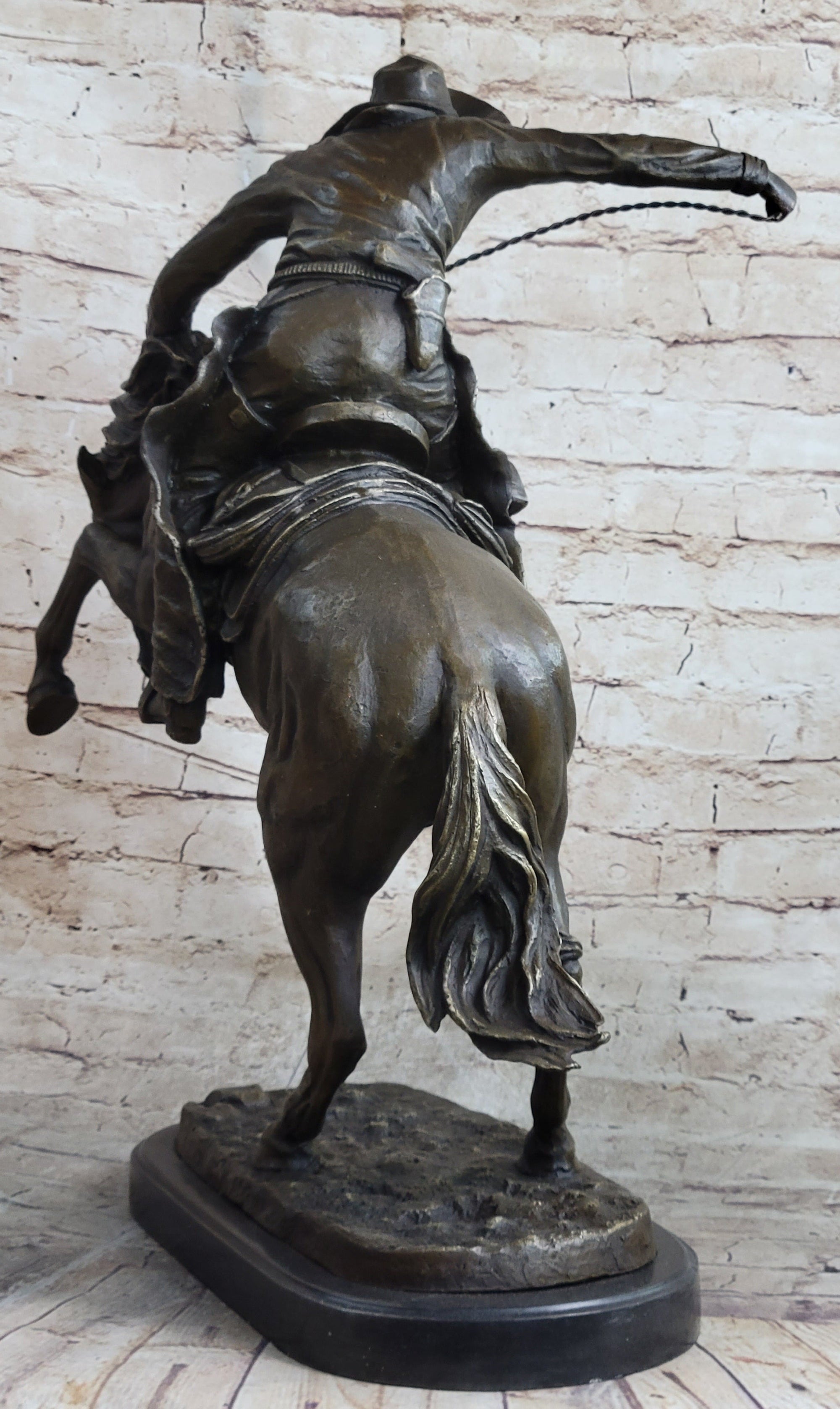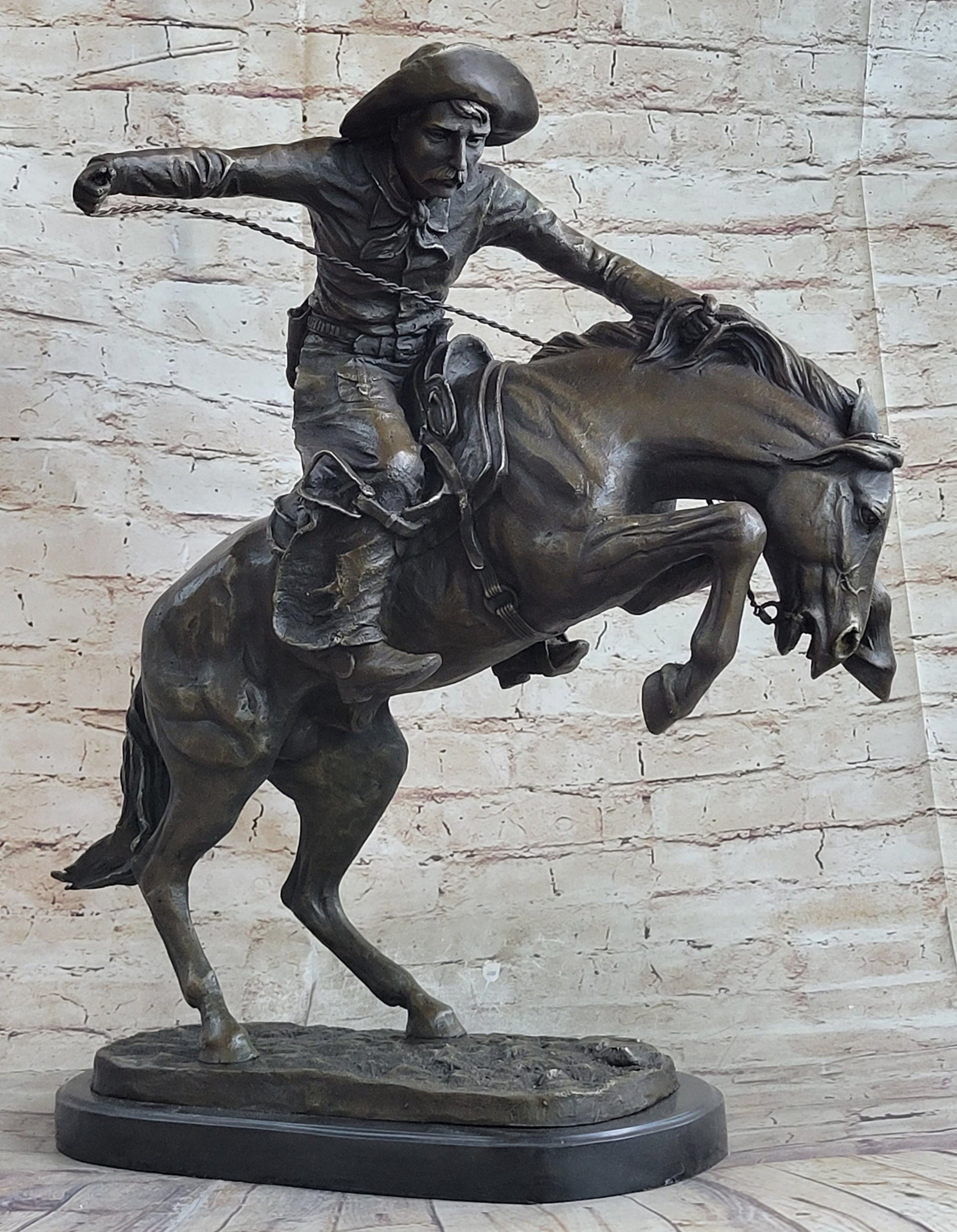 Frederic Remington Arizona Cowboy on Horse Art Deco Western Bronze Sculpture