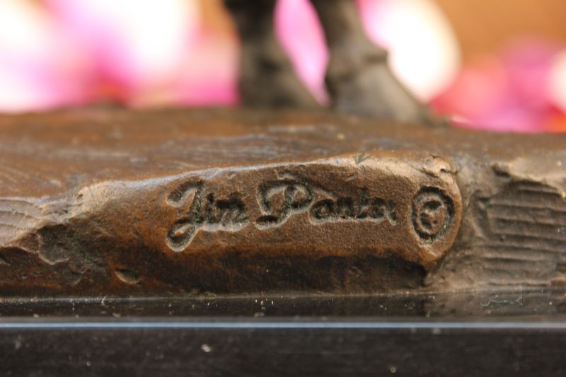Signed Cowboy Horse Western Bronze Sculpture Statue Marble Base Figure Decor