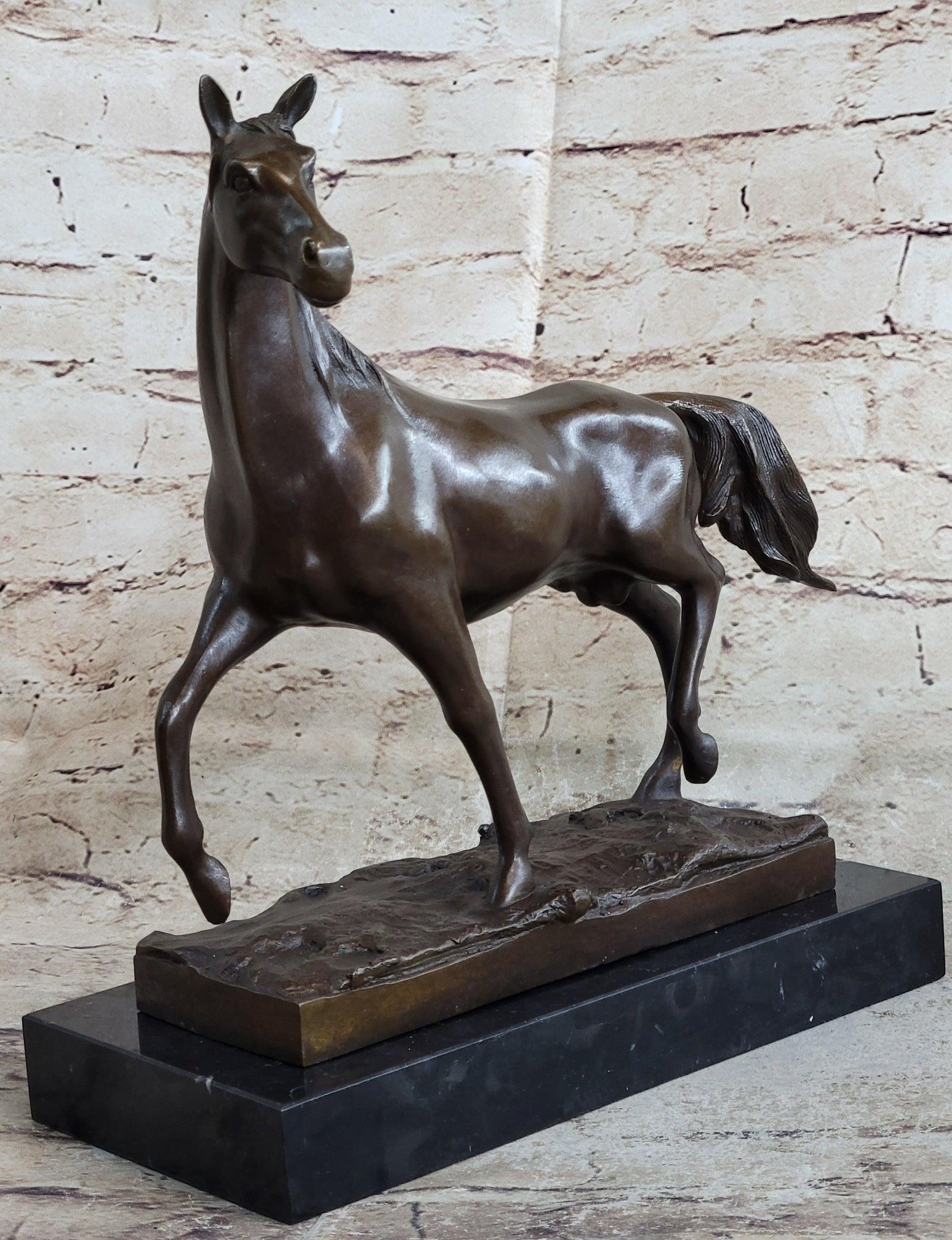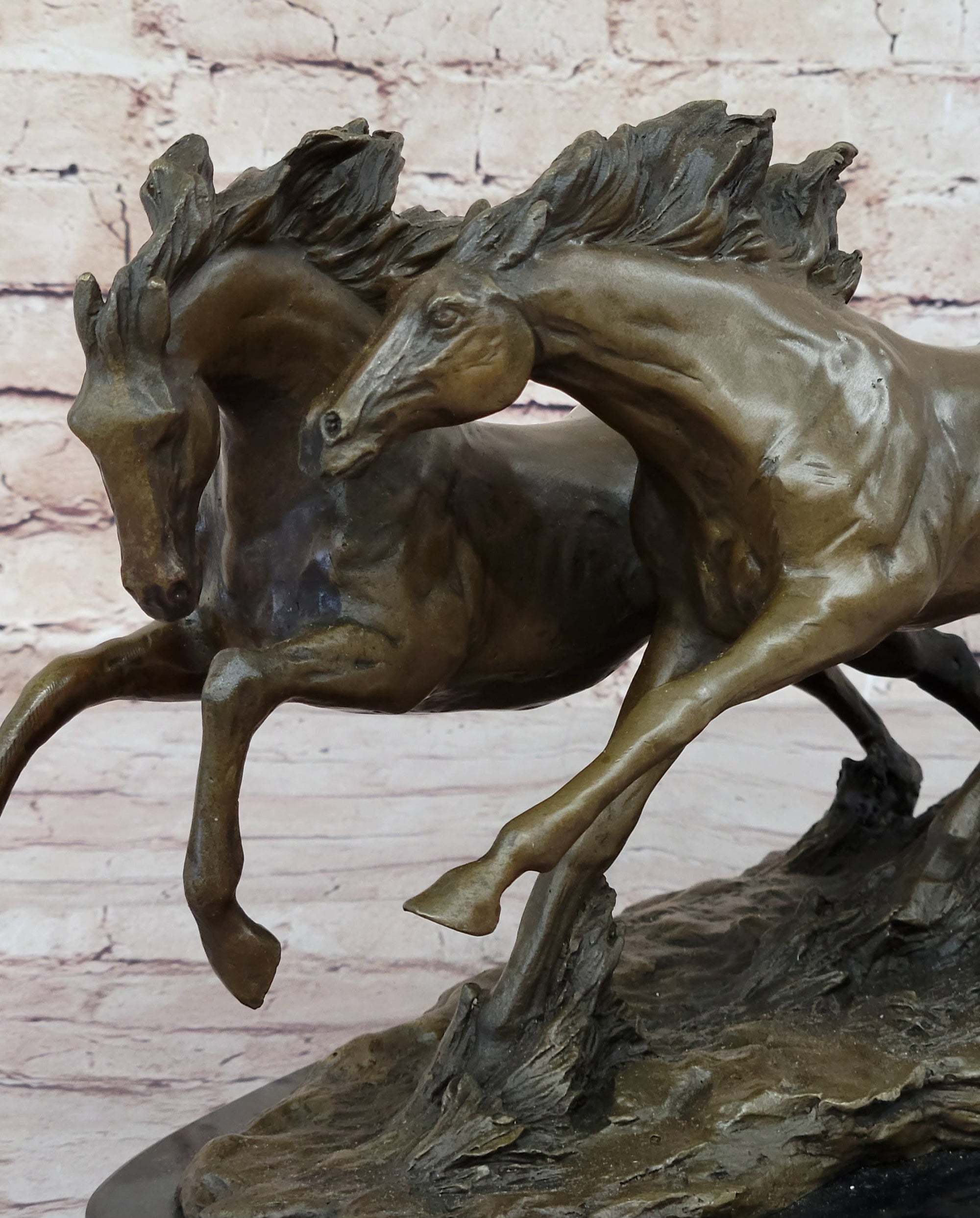 Necking Horses Equestrian Horse Lover Bronze Sculpture Statue Art Figure Marble Base