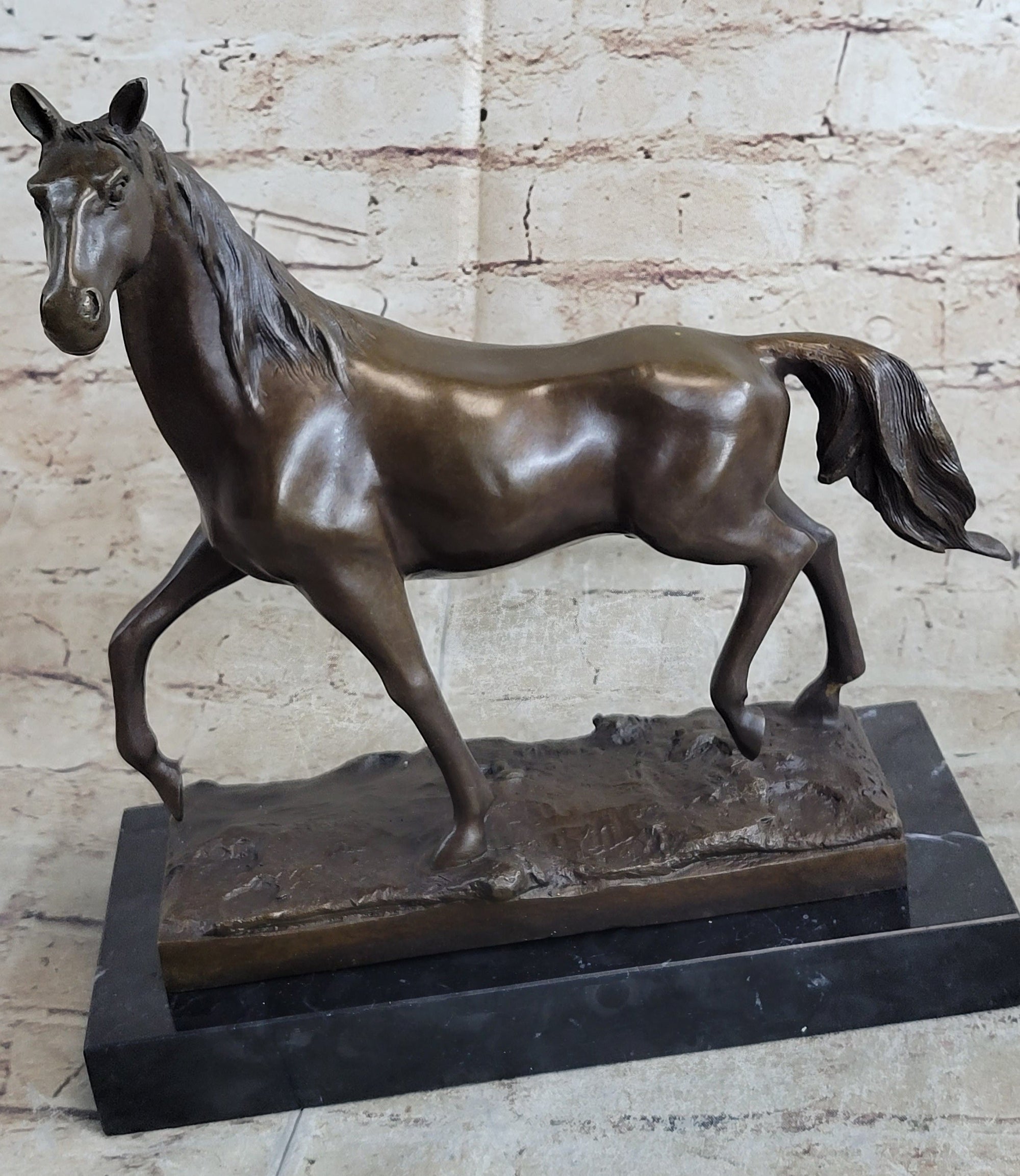 Thoroughbred Running Horse Equestrian Western Art Bronze Marble Statue Figurine