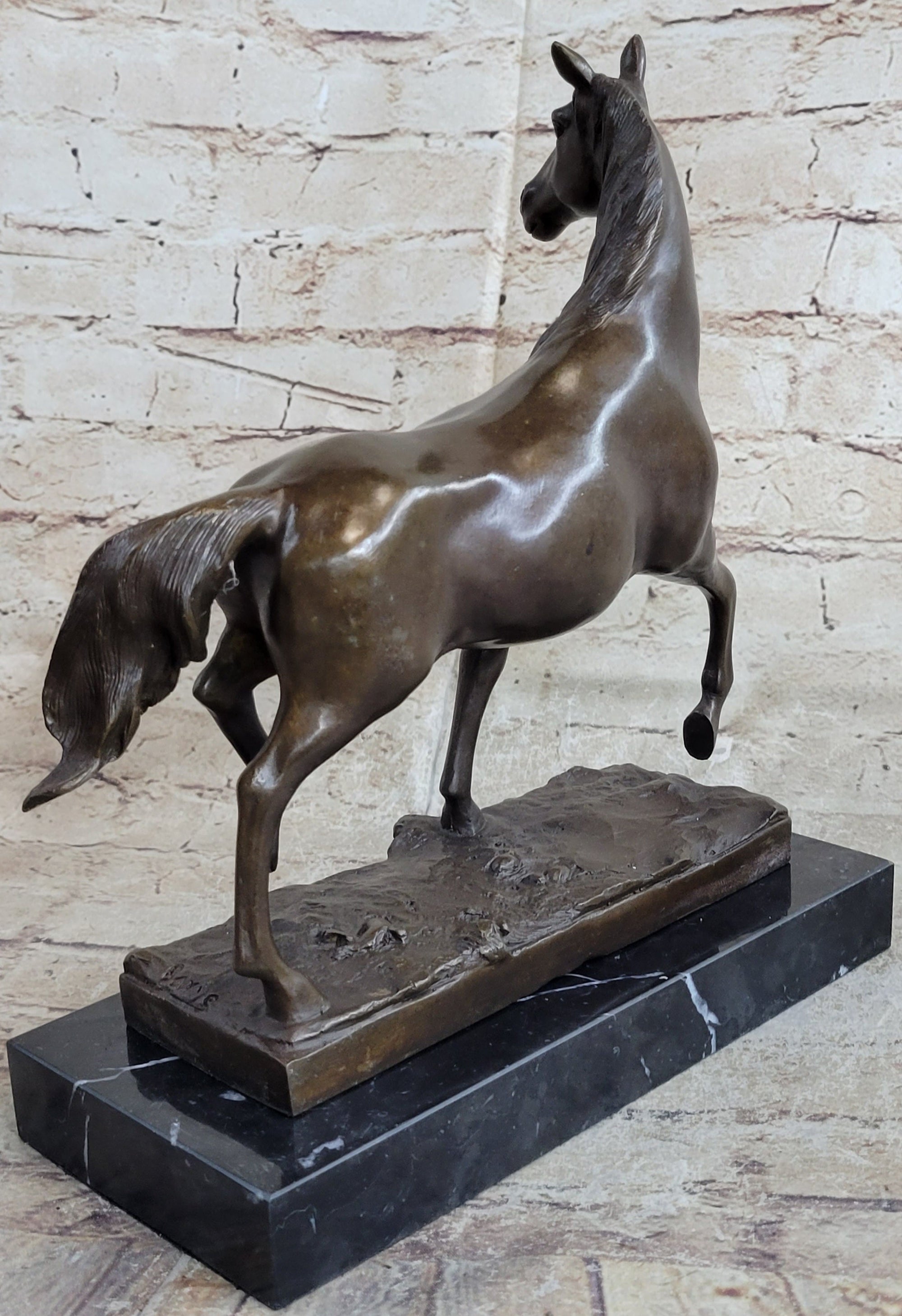 Hot Cast Bronze Horses Head Sculpture Marble Statue Figurine Barye Home Decor Art