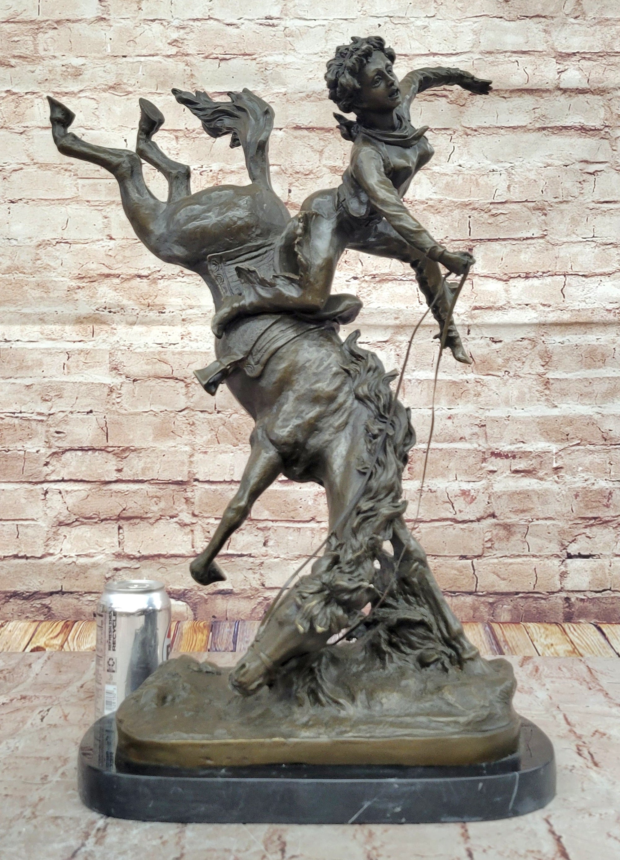 Cowboy Bucked off Rearing Horse Bronze Sculpture Statue Country Western Decor Marble Base