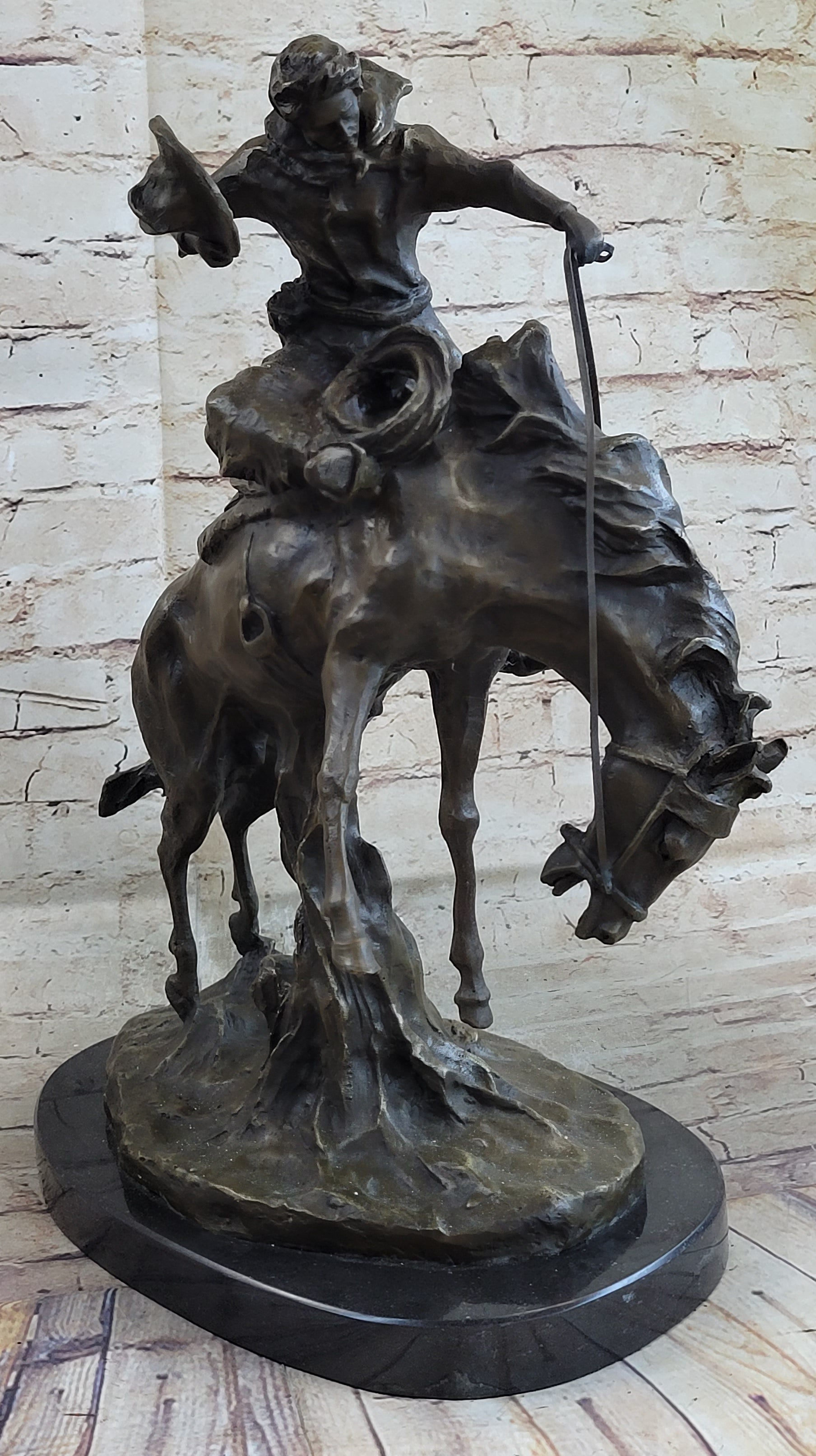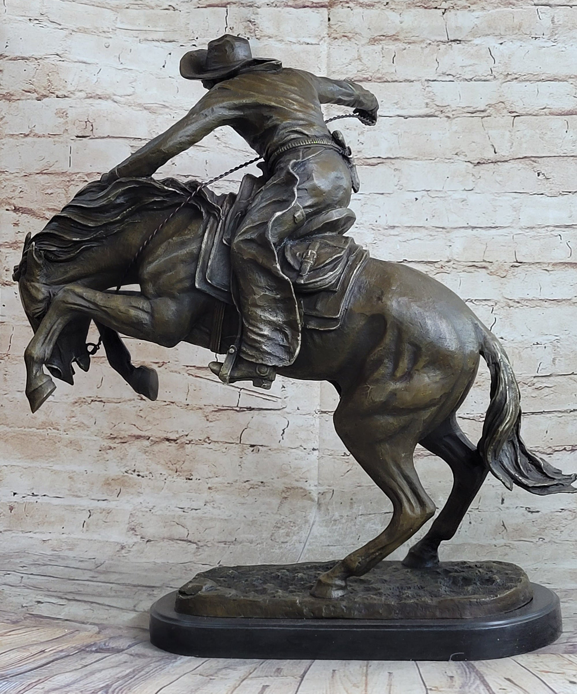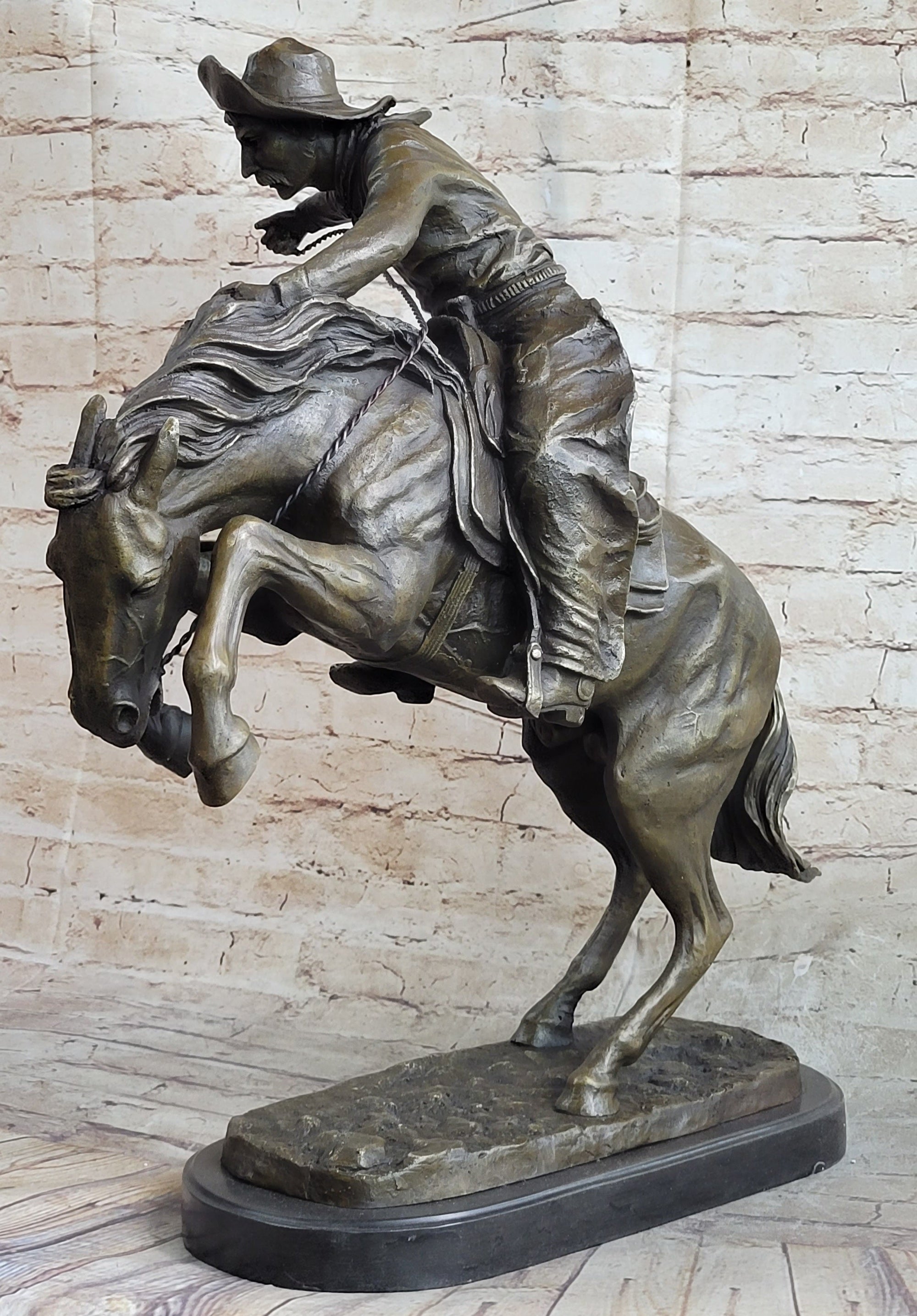 Western Decor Cowboy on Bucking Bronco Buster Horse Sculpture Statue