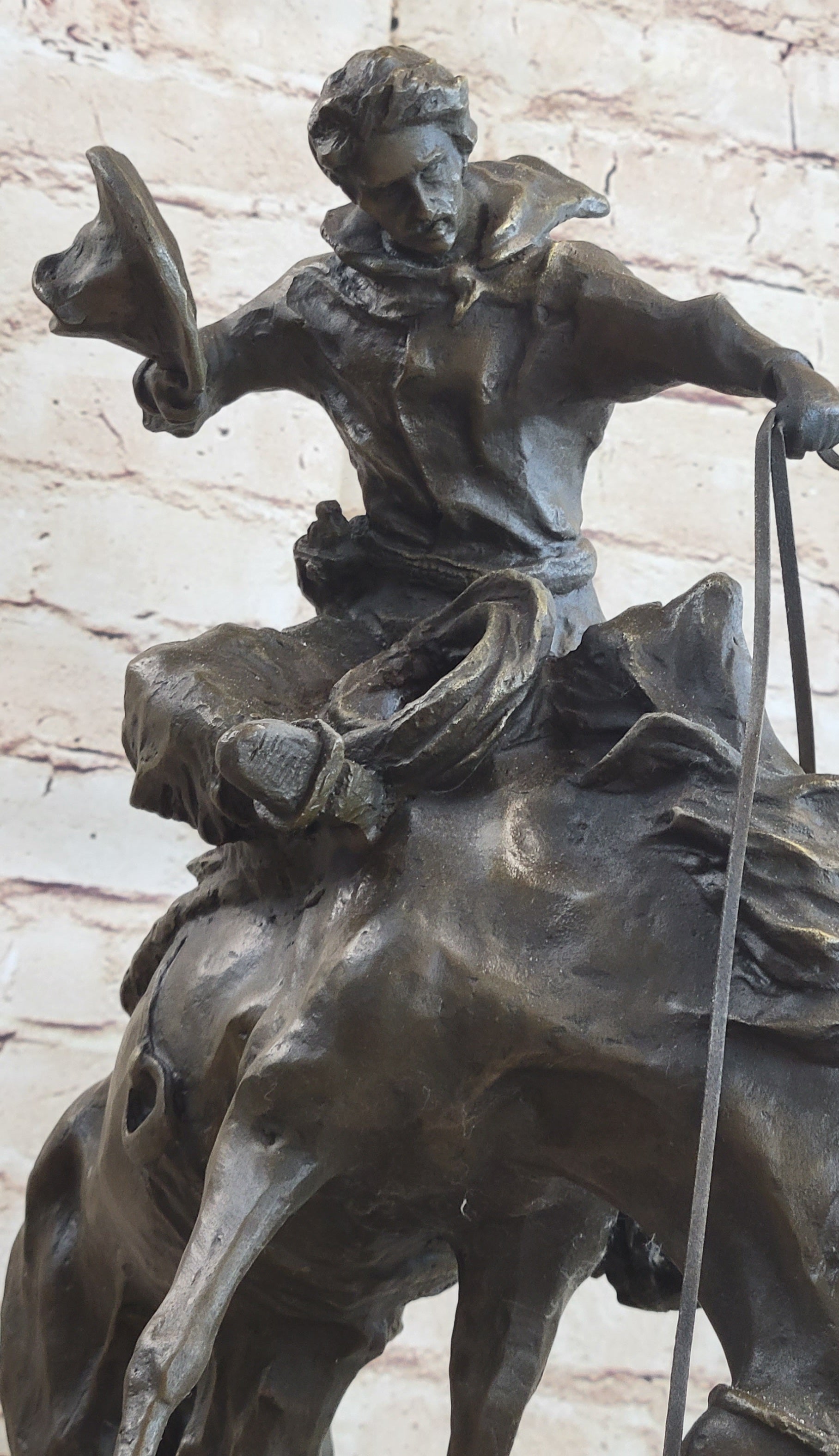 Stunning Bronze Sculpture Cowboy with Horse Miguel Lopez Statue Figure