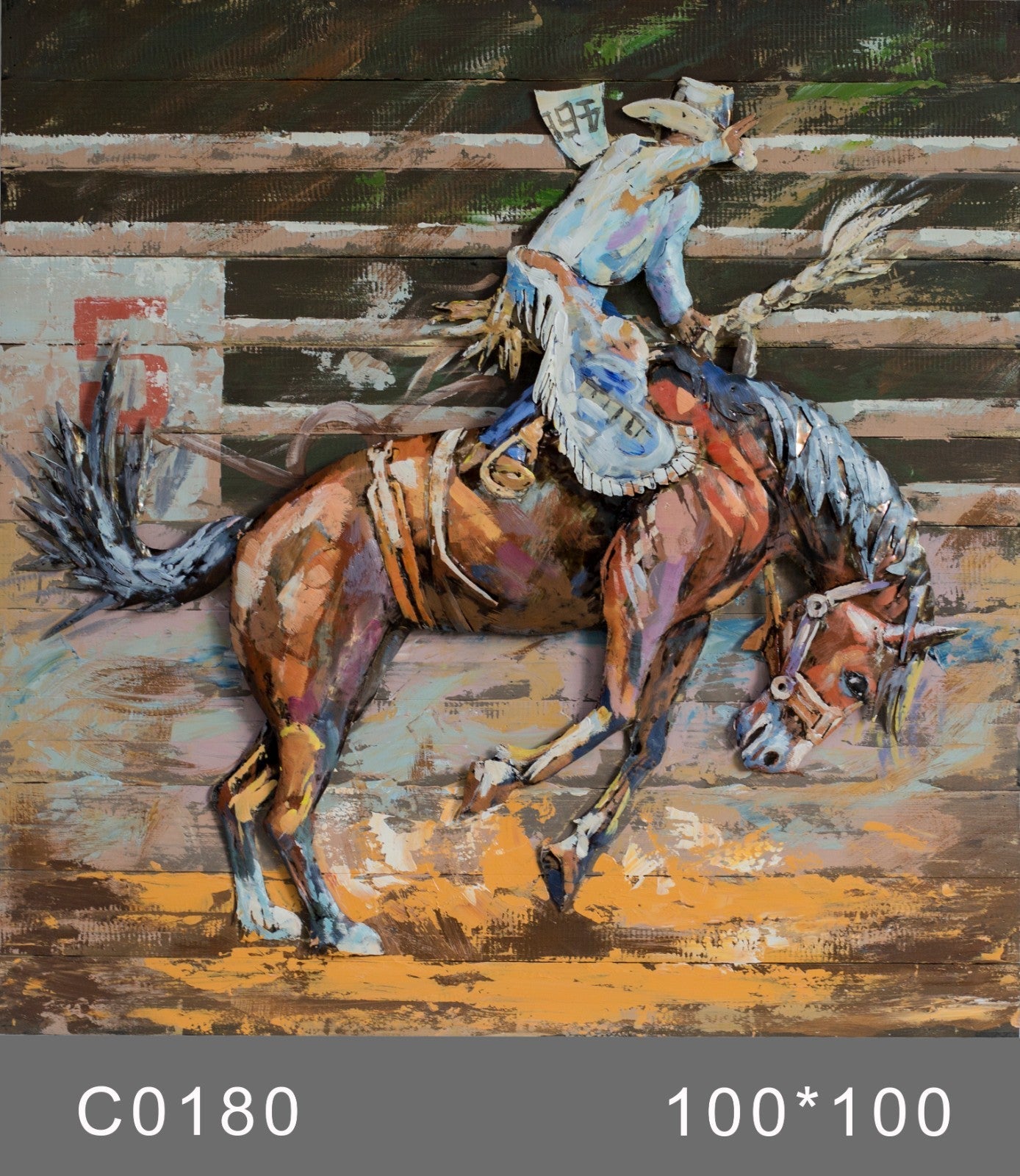 America West Cowboy horse racing oil painting 3d art metal home goods horse Sale