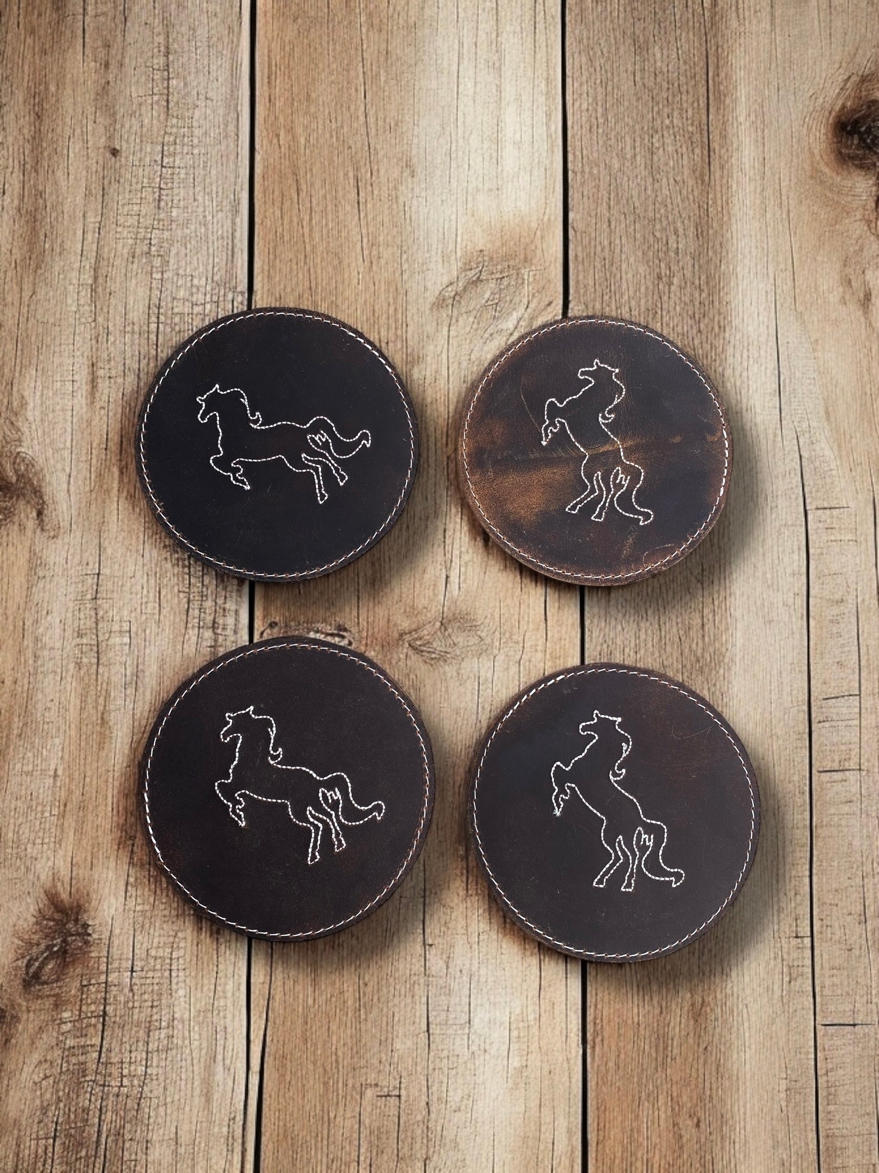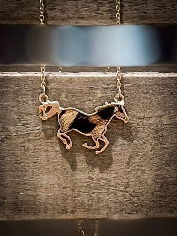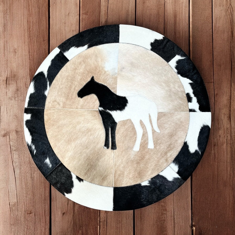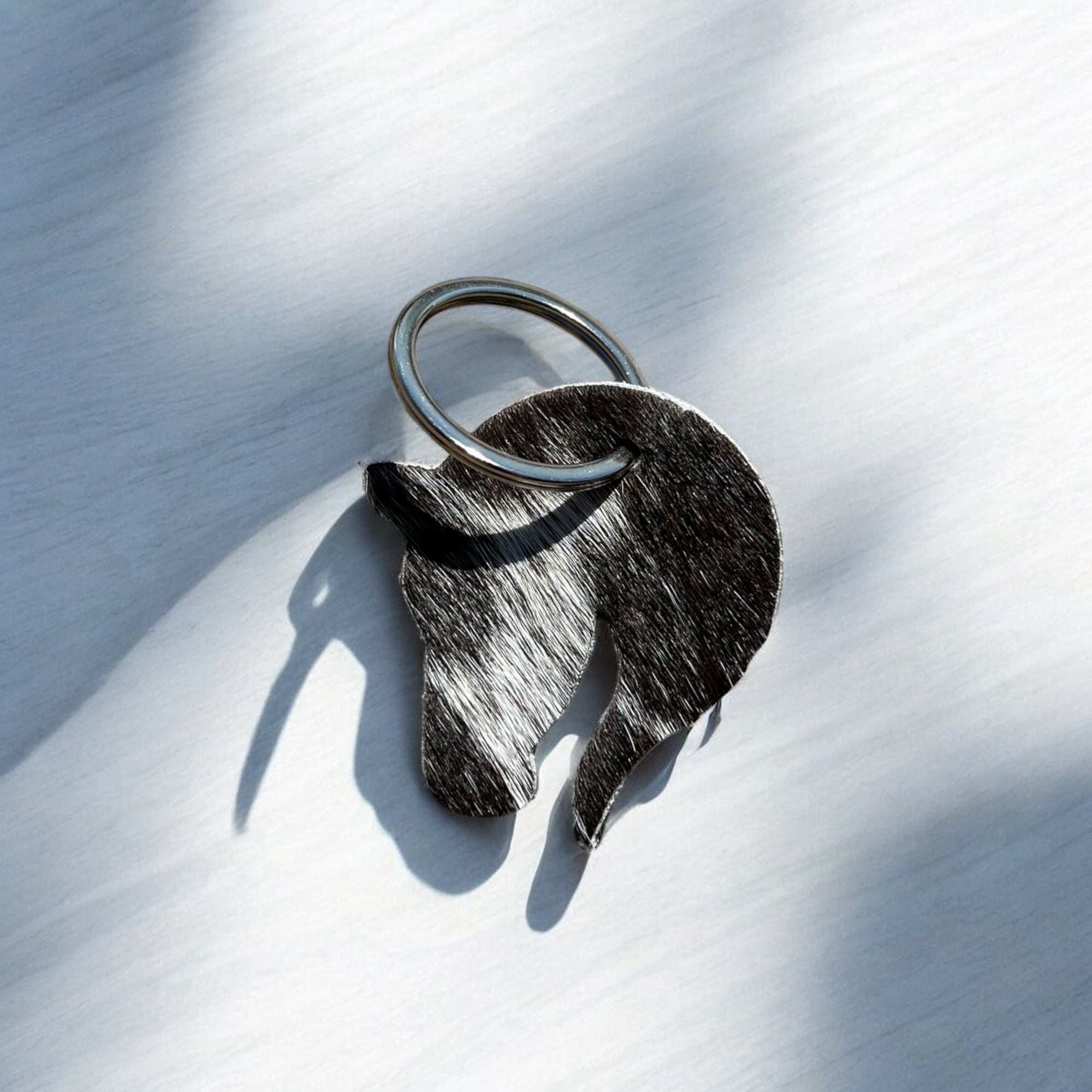 Horse Rustic Leather & Cowhide Keychain 1pc