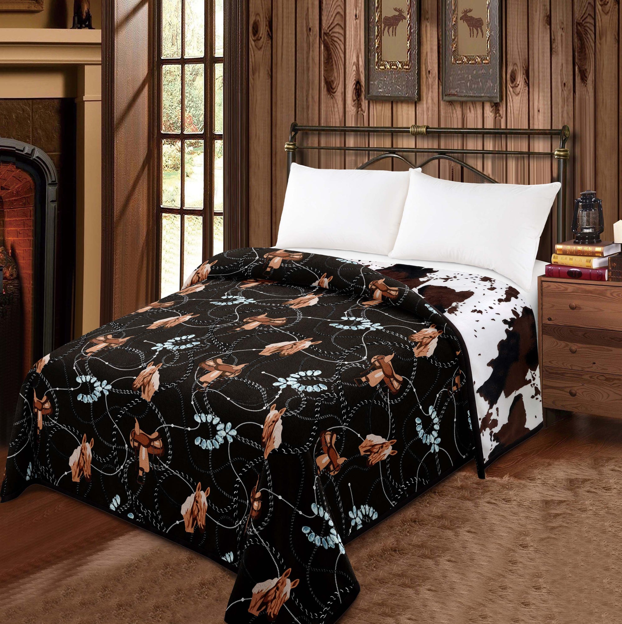 Black Horse - Cowprint Mia Reversible 2 Design Blanket