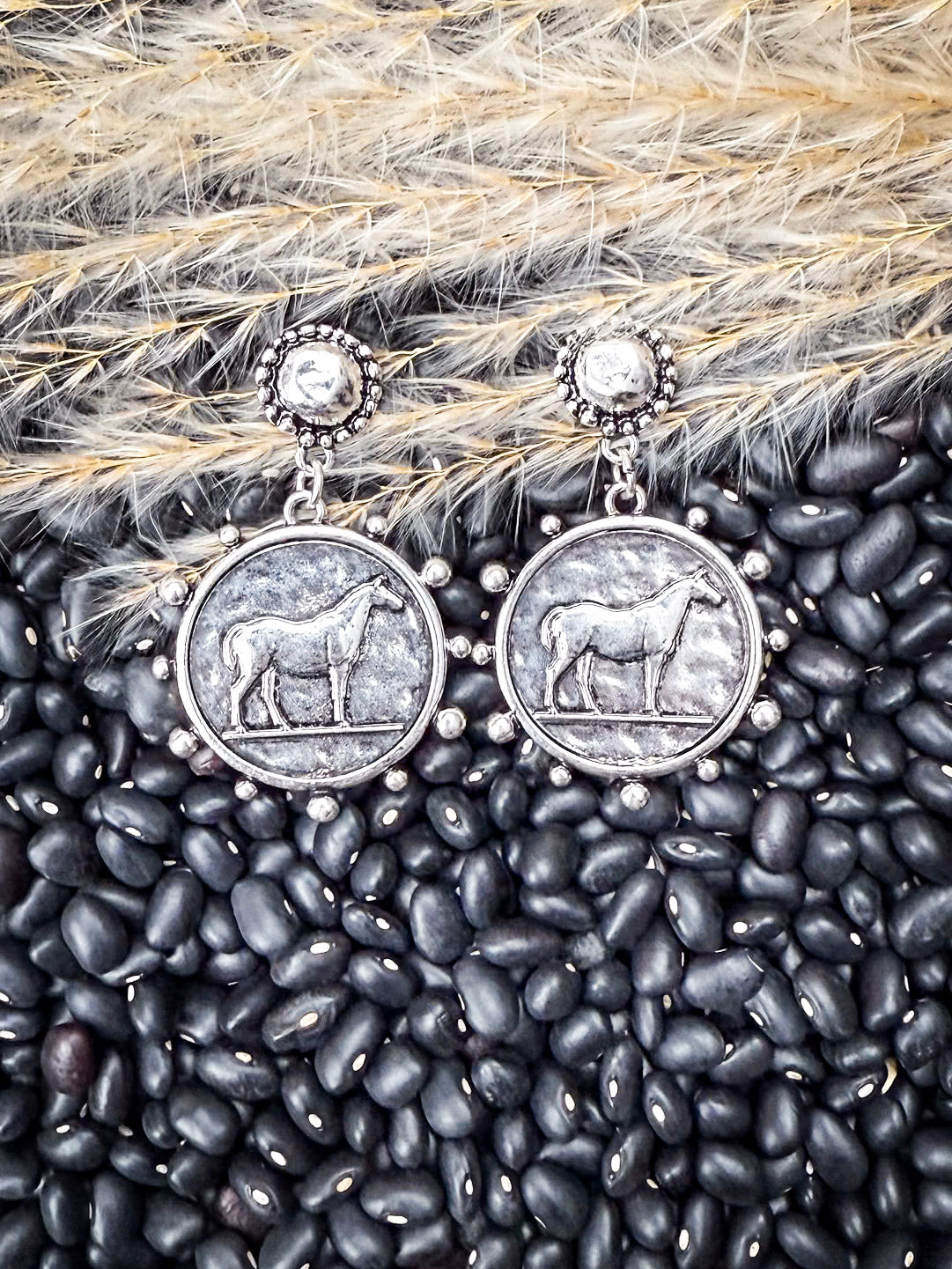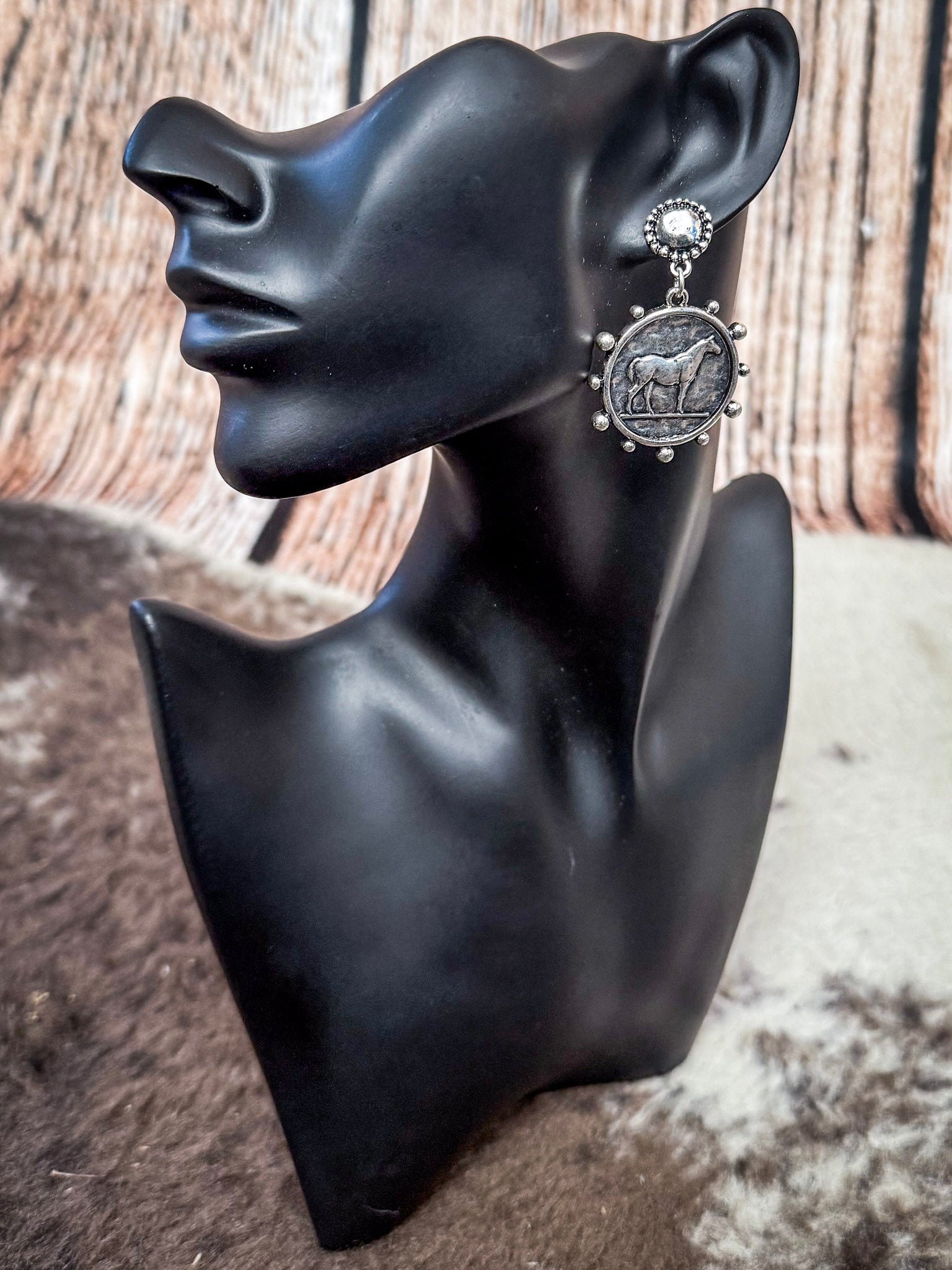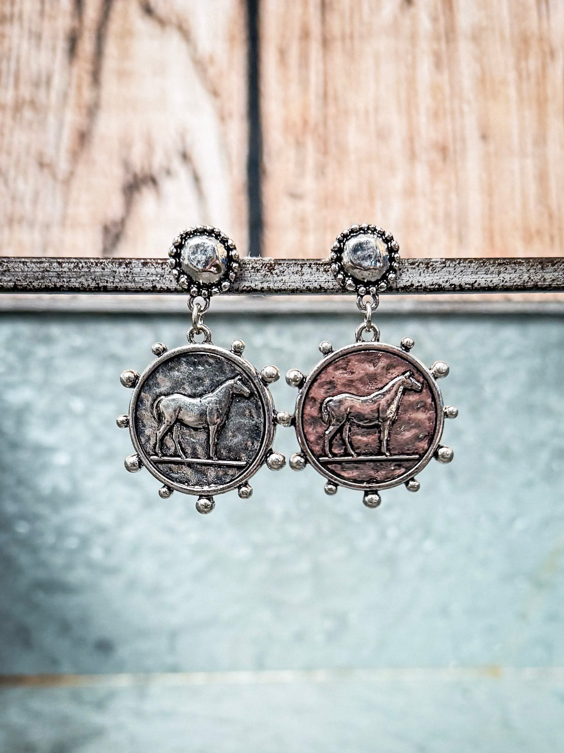 Cassidy Western Horse Coin Fashion Stud Earrings