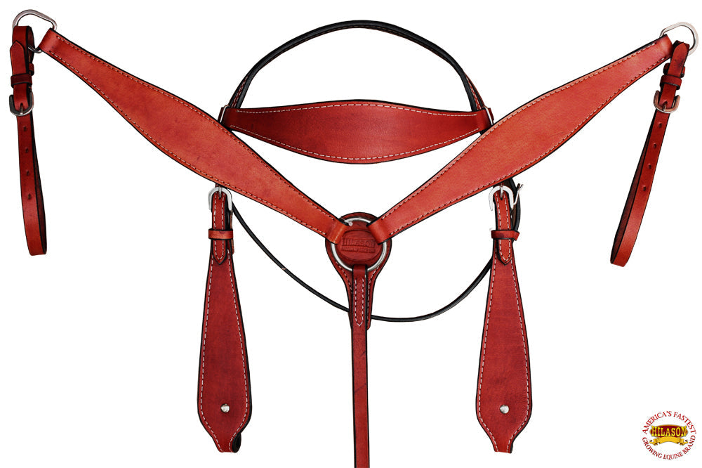 HILASON Western Horse Headstall Breast Collar Set Tack Genuine American Leather Plain Mahogany