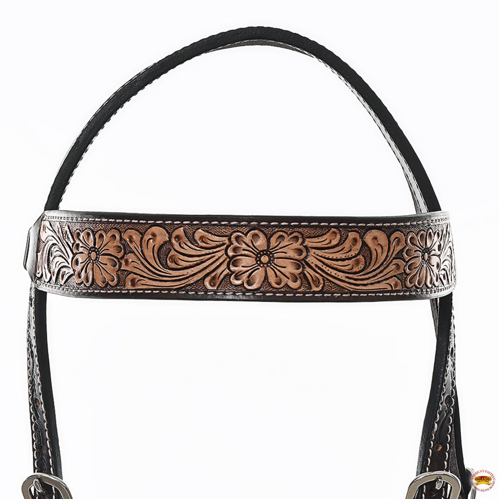 HILASON Western Horse Headstall American Leather Tan Sun flower