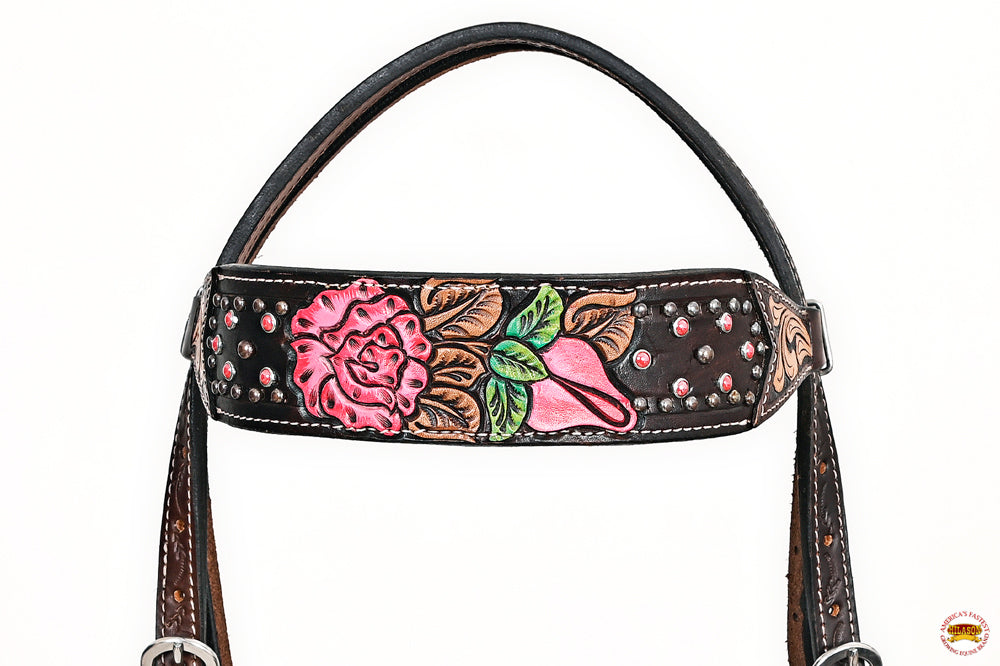 HILASON Western Horse Headstall Breast Collar Wither Strap Set American Leather Floral