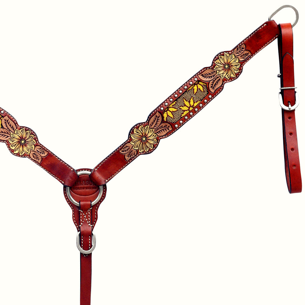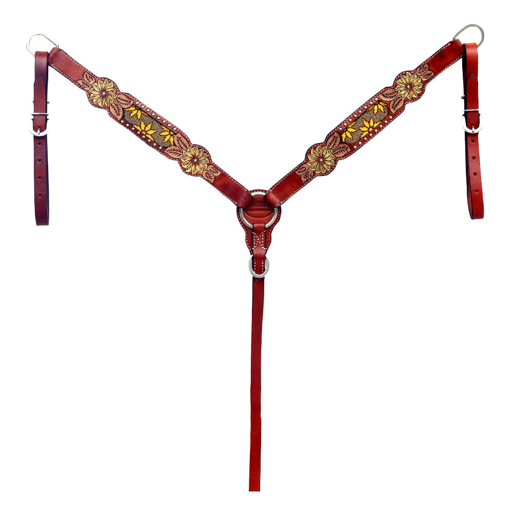 Hilason Horse Floral Hand Painted American Leather Breast Collar Headstall Dark Brown