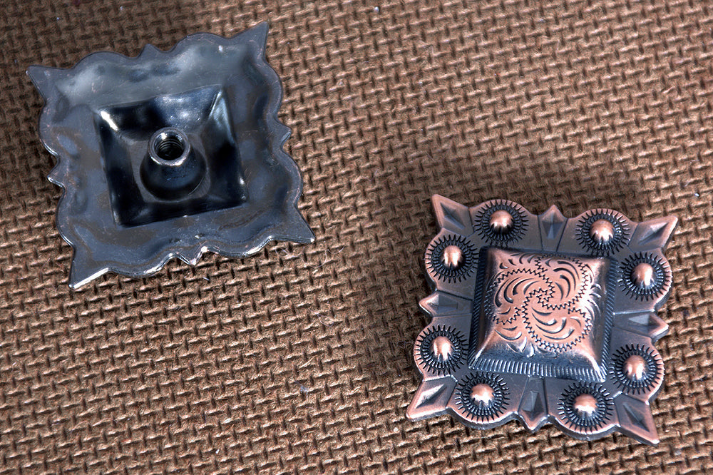 Western Screw Back Concho Square Copper Engraved Saddle Horse 1.5 In