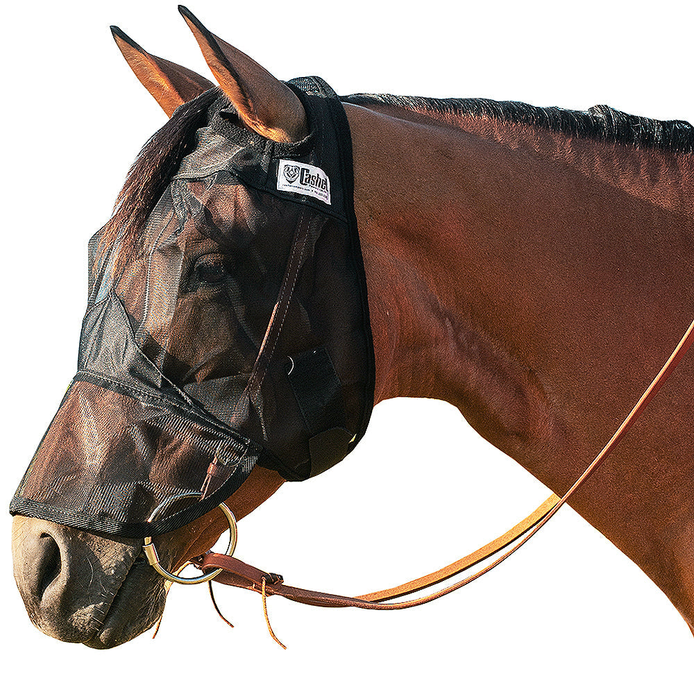 Cashel Quiet Ride Horse Fly Mask Long Nose Black Horse Size