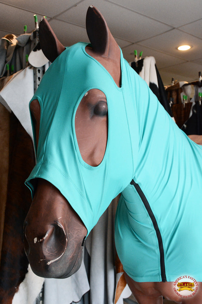 Hilason Spandex Horse Mane Stay Hood Neck Cover With Zipper Teal