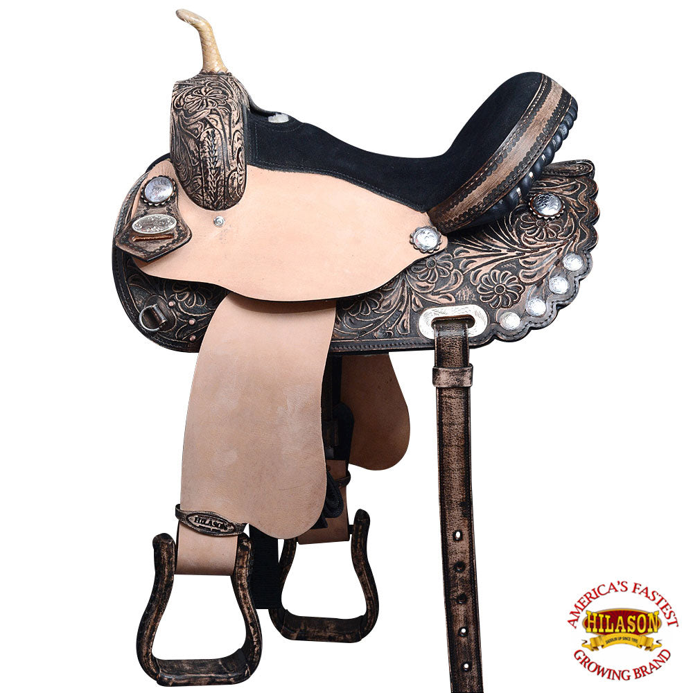 Western Horse Saddle Hilason In American Leather Flex Tree Barrel Trail