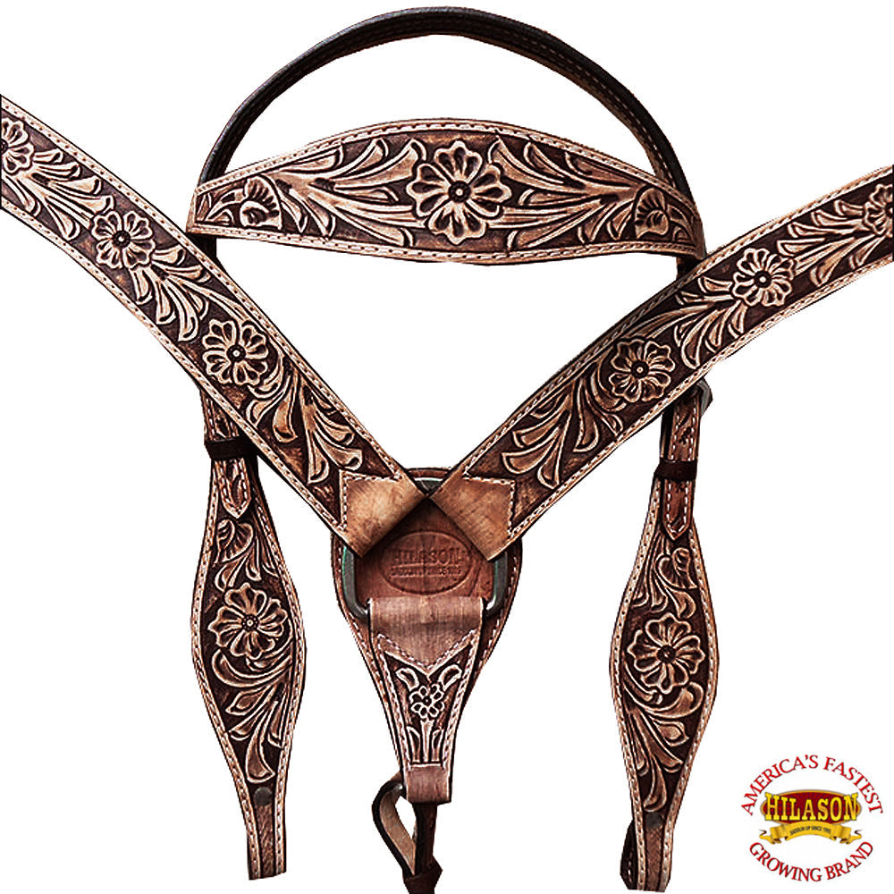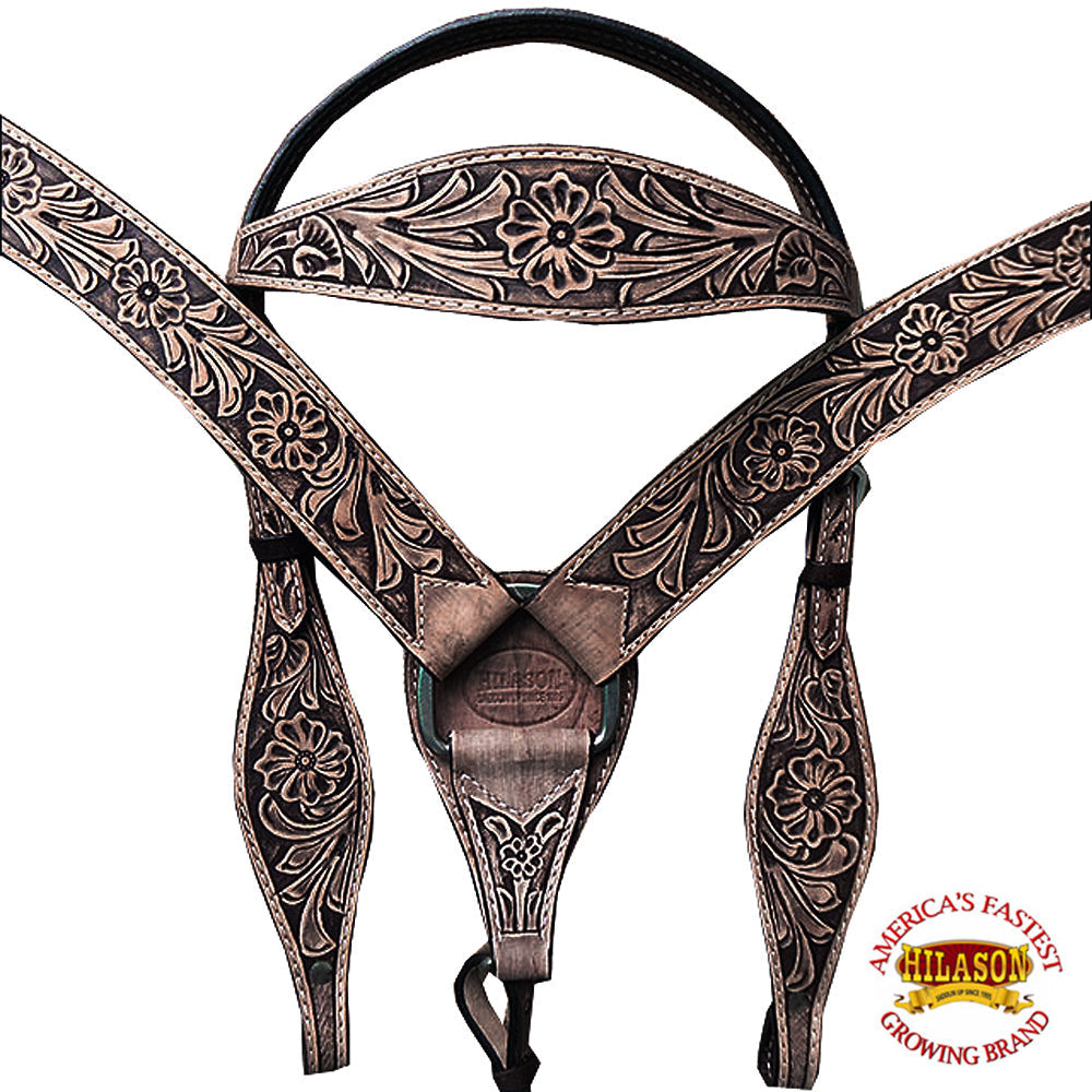 Western Horse Headstall Tack Bridle American Leather Hand Carved Hilason