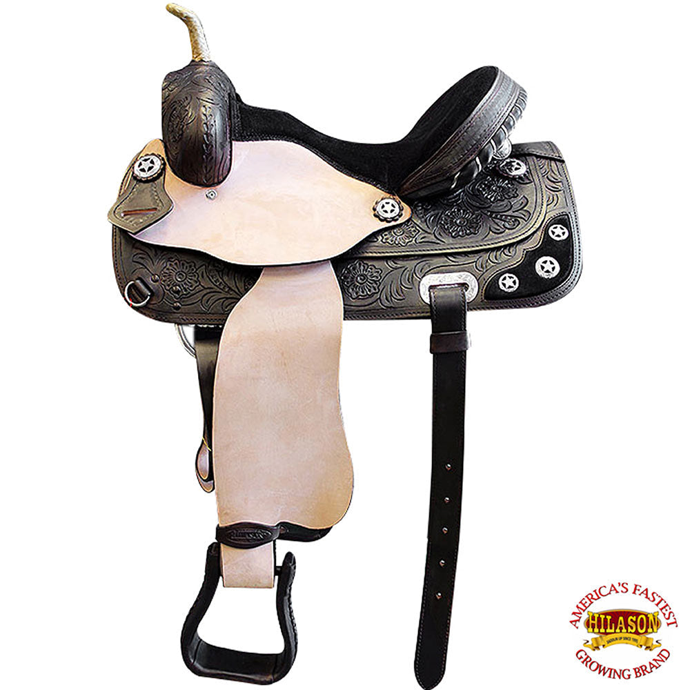 HILASON Western Horse Treeless Trail Barrel Saddle American Leather | Horse Saddle | Western Saddle | Treeless Saddle | Saddle for Horses | Horse Leather Saddle