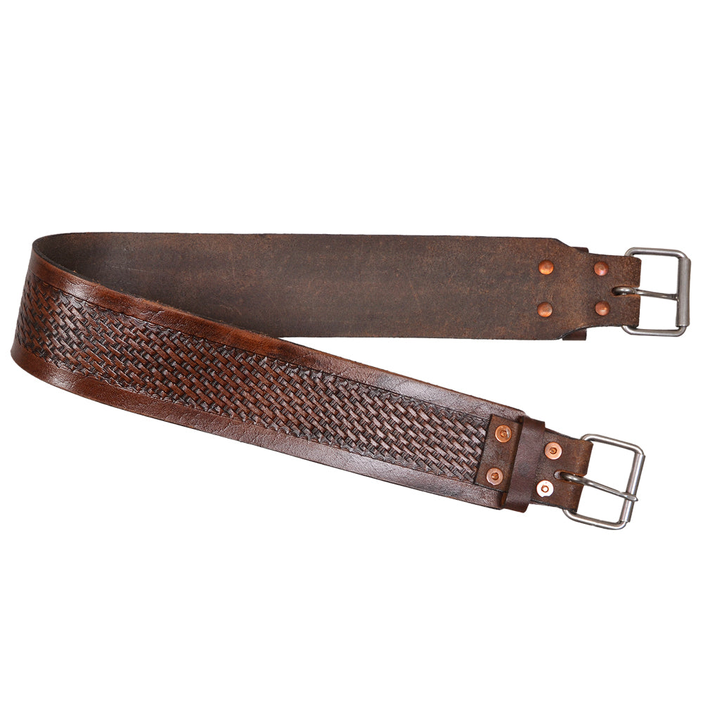 Comfytack Horse Saddle Cinch Girth Handtooled Basketweave Leather Brown