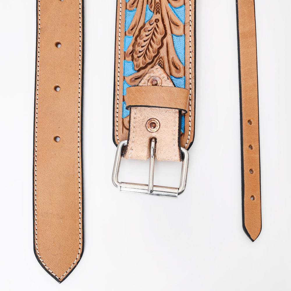 Comfytack Horse Western Floral Tooled Leather Rear Flank Saddle Cinch With Billets