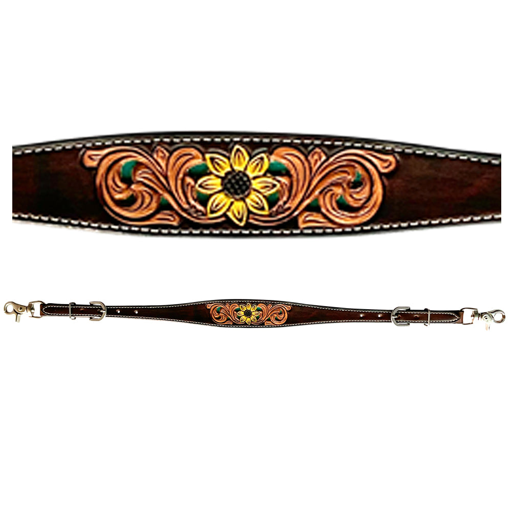 Bar H Equine Western Horse Hand Tooled Genuine Leather Wither Strap Brown