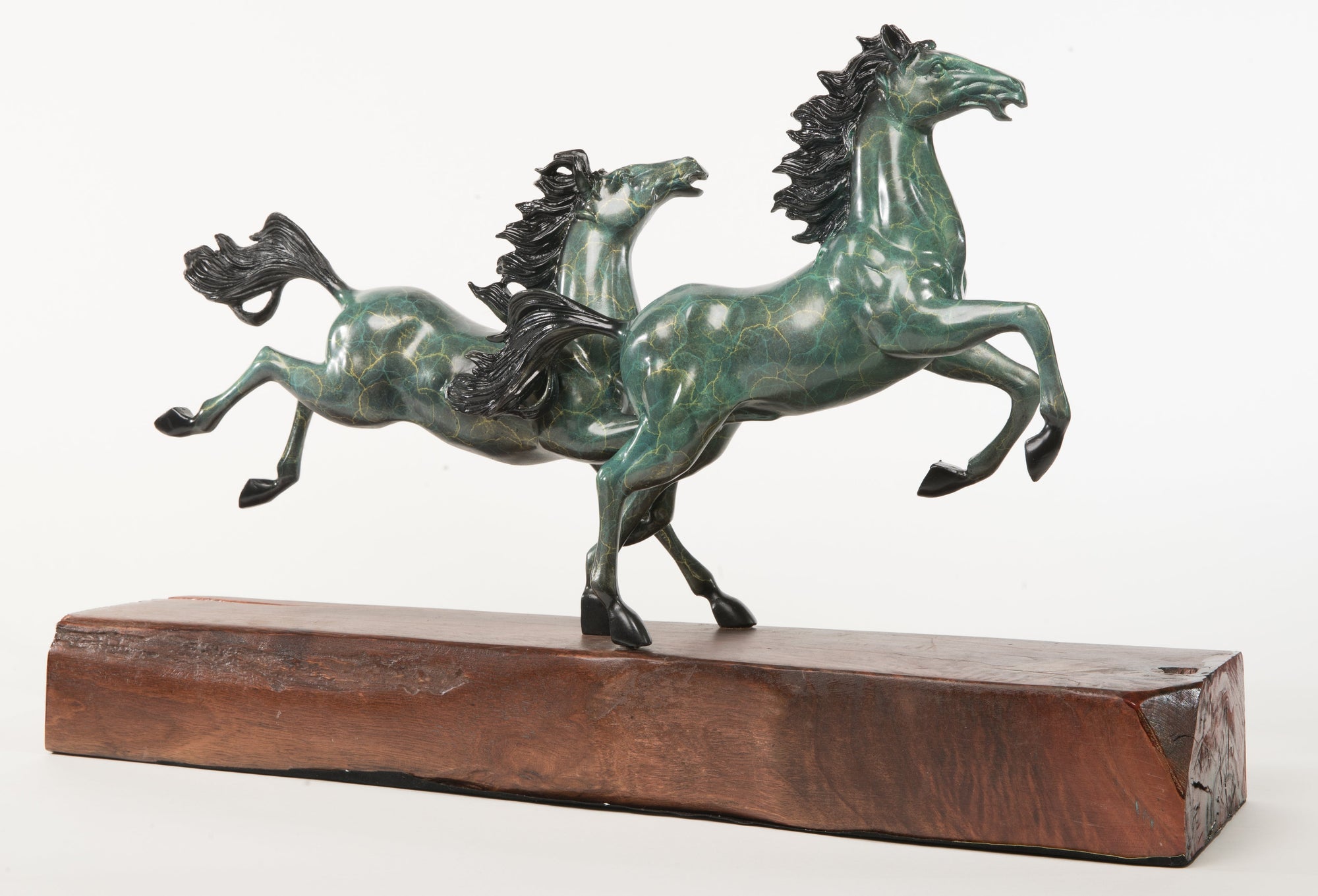Limited Edition Two Galloping Horses Hand Painted Museum Quality Bronze Artwork