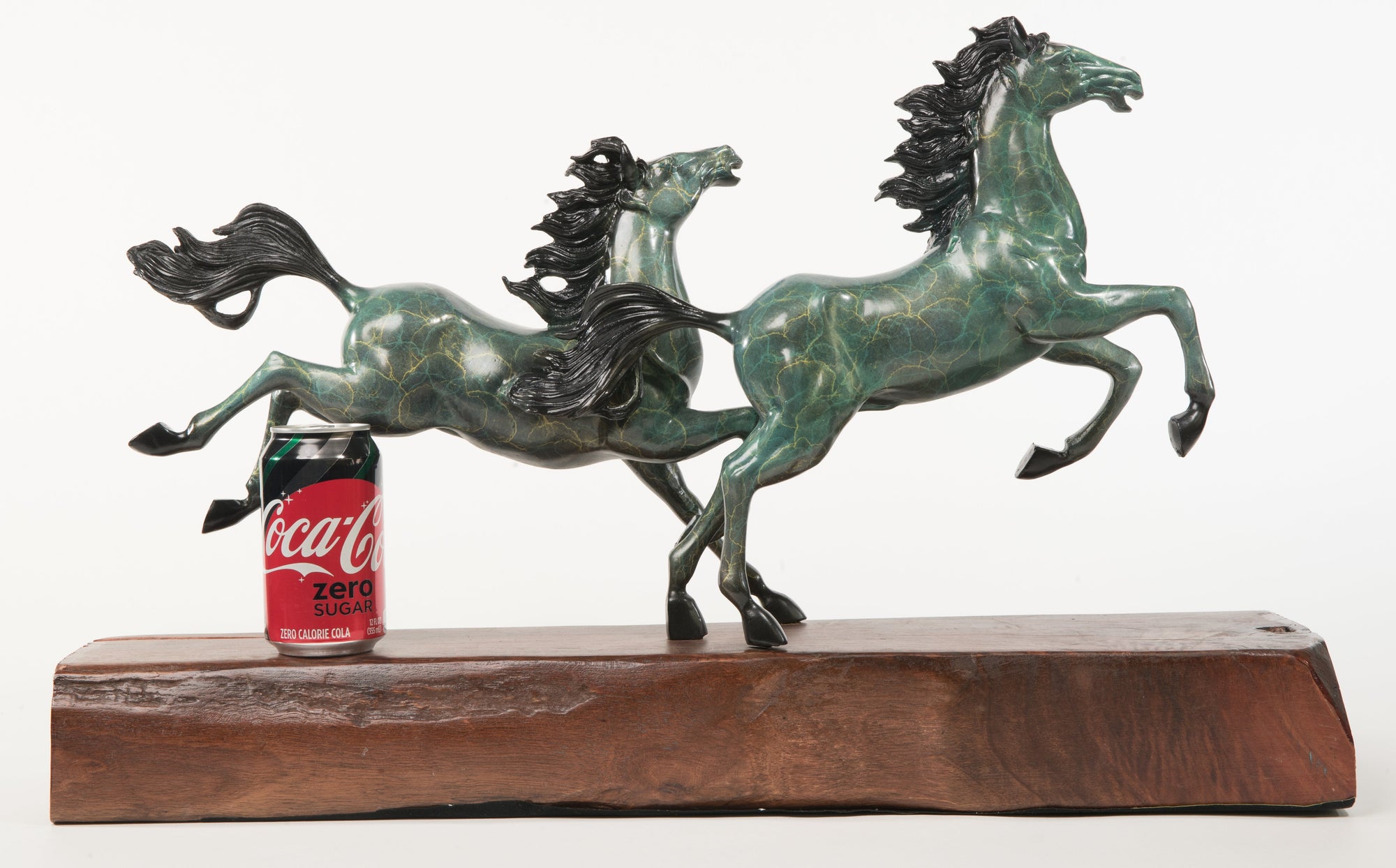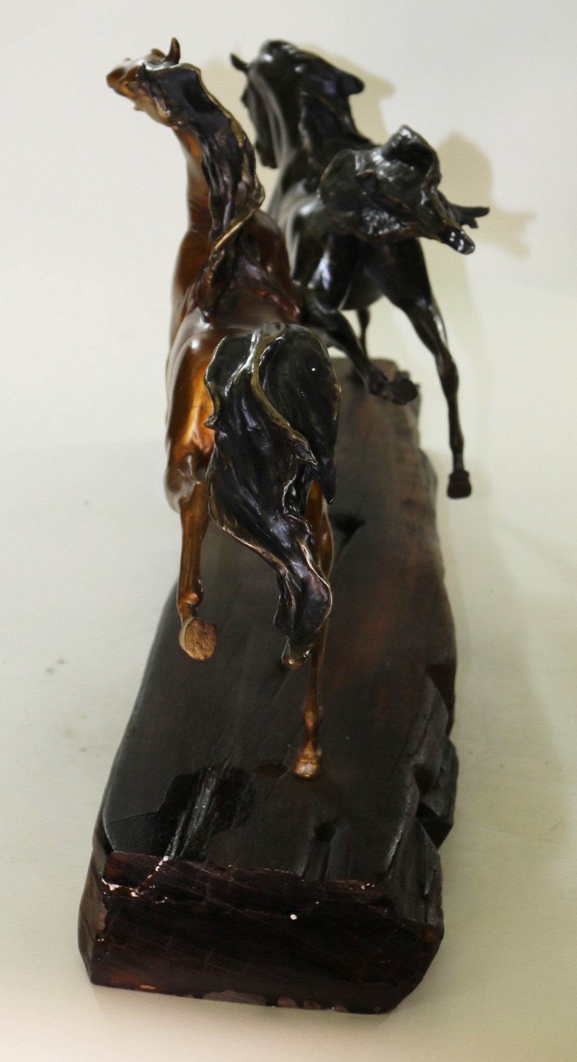 Galloping Pair of Horses Bronze Statue Sculpture Decor Signed Zhang 10" x 17"