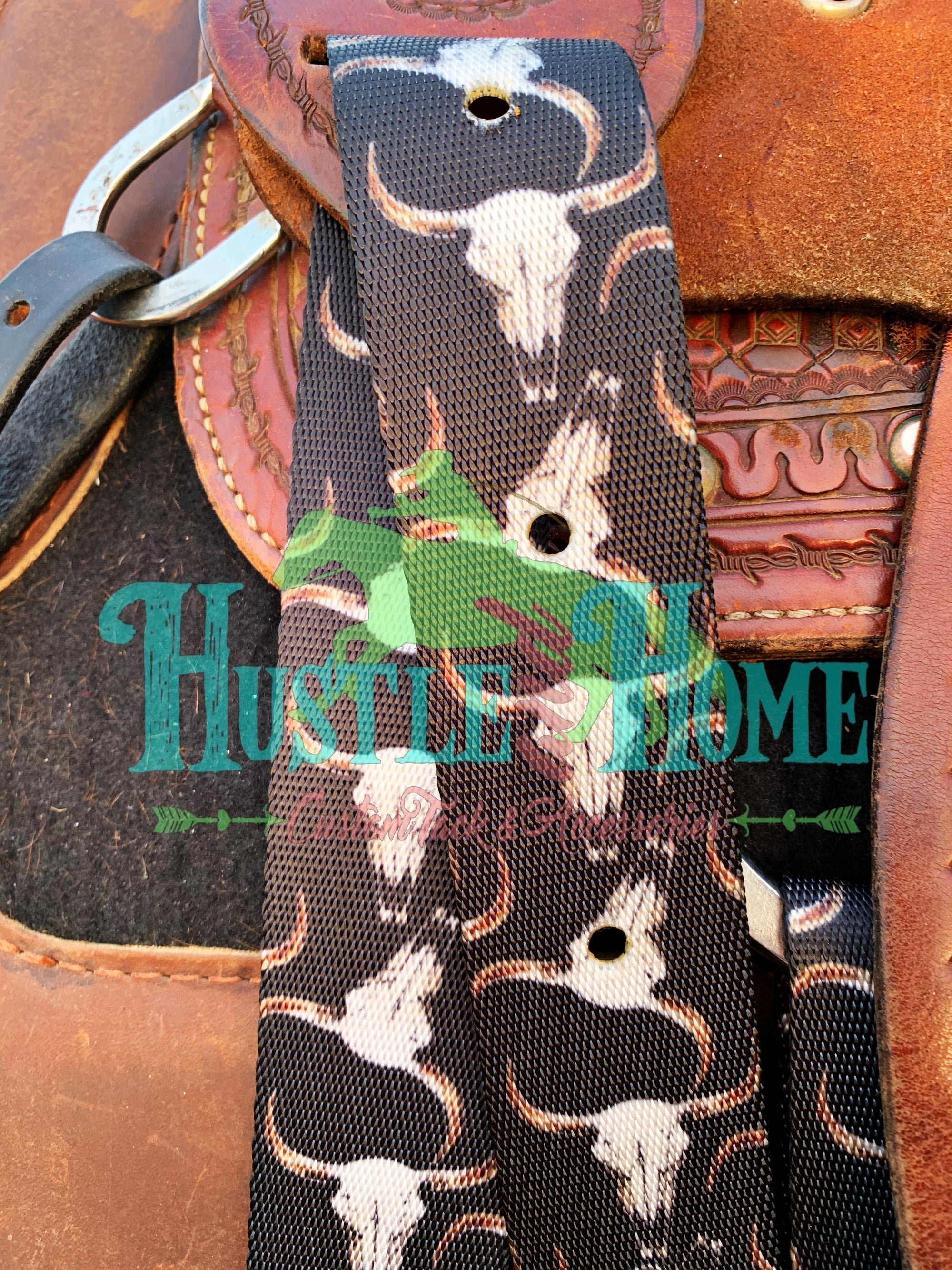 Longhorn Skull Print Cinch Strap Set