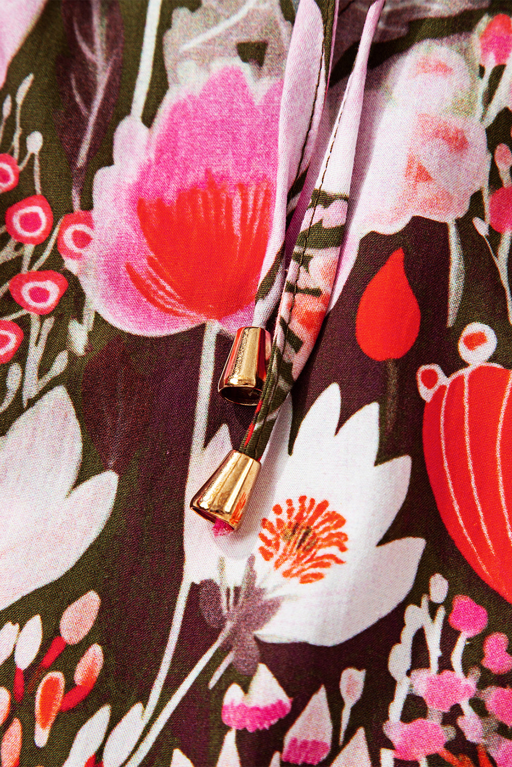 Floral 3/4 Sleeve Lace-Up Neck Blouse
