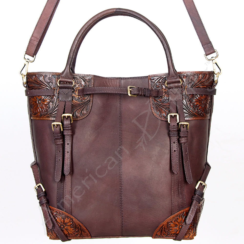 American Darling ADBGI147B Tote Hand Tooled Genuine Leather Women Bag Western Handbag Purse