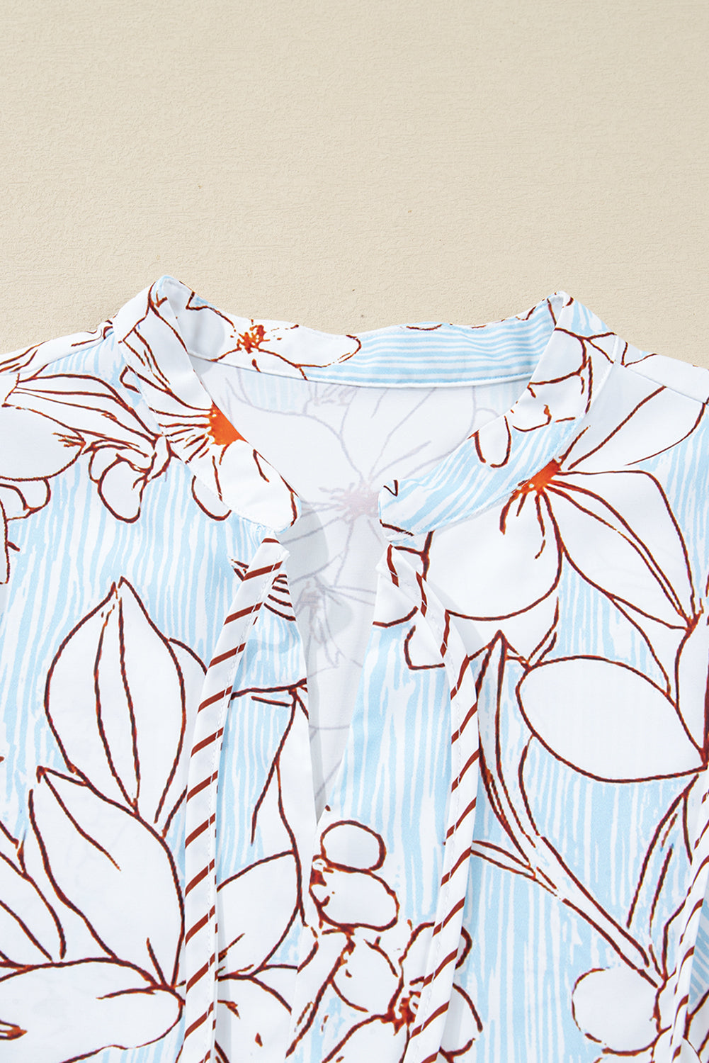 Floral Patchwork Waffle Textured V-Neck Hooded Top