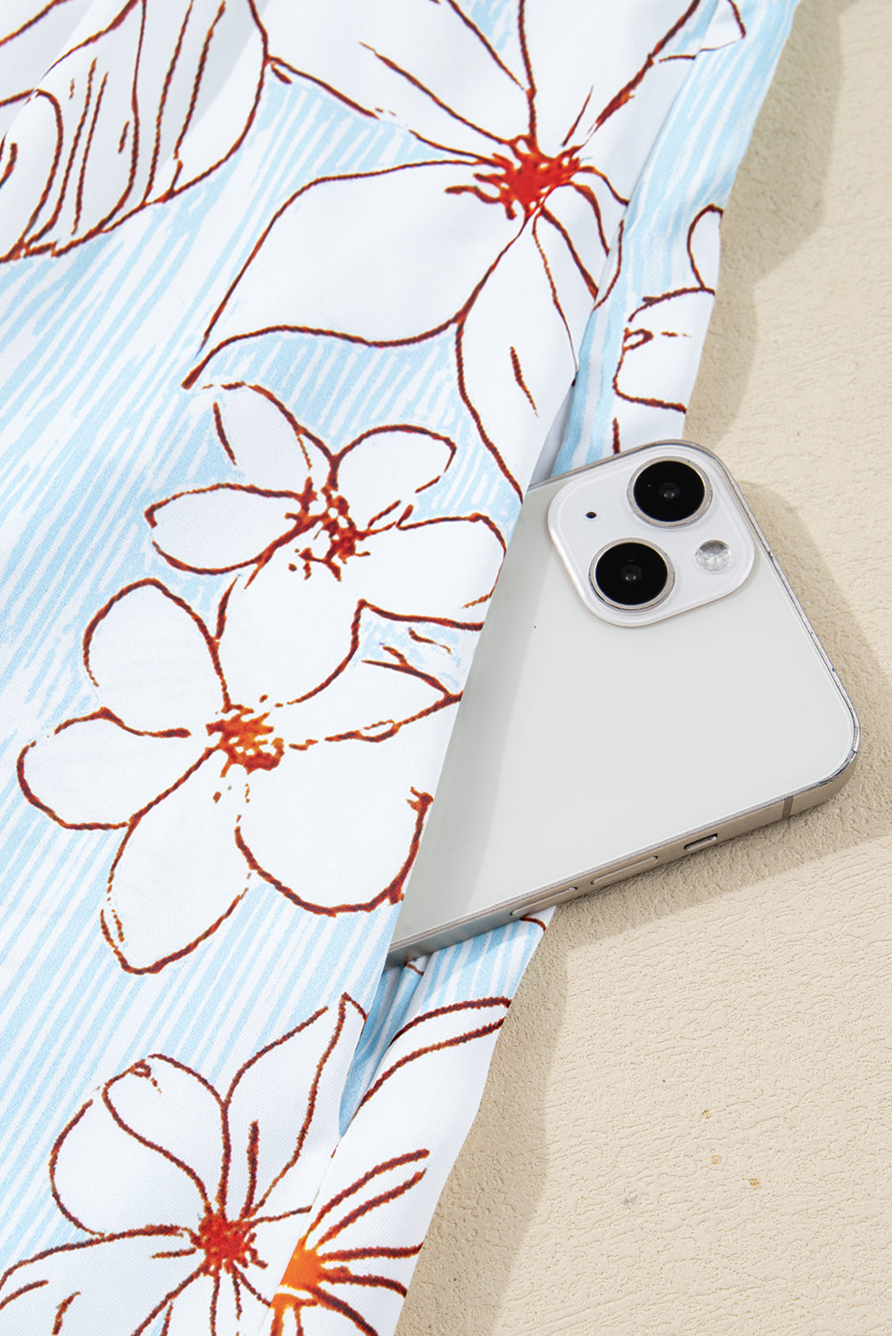 Floral Colorblock Patchwork Chest Pocket Long Sleeve Top