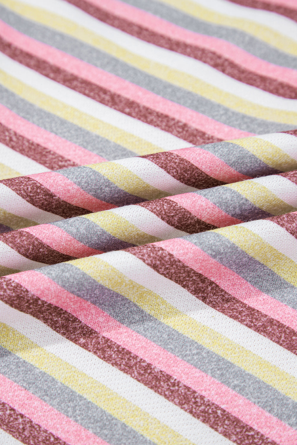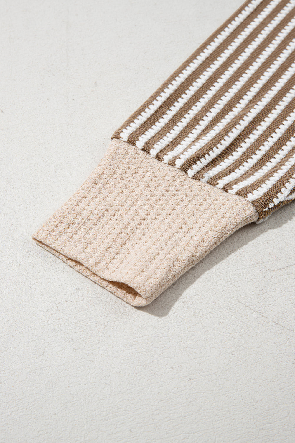Stripe Patchwork Reverse Seam Henley Sweatshirt