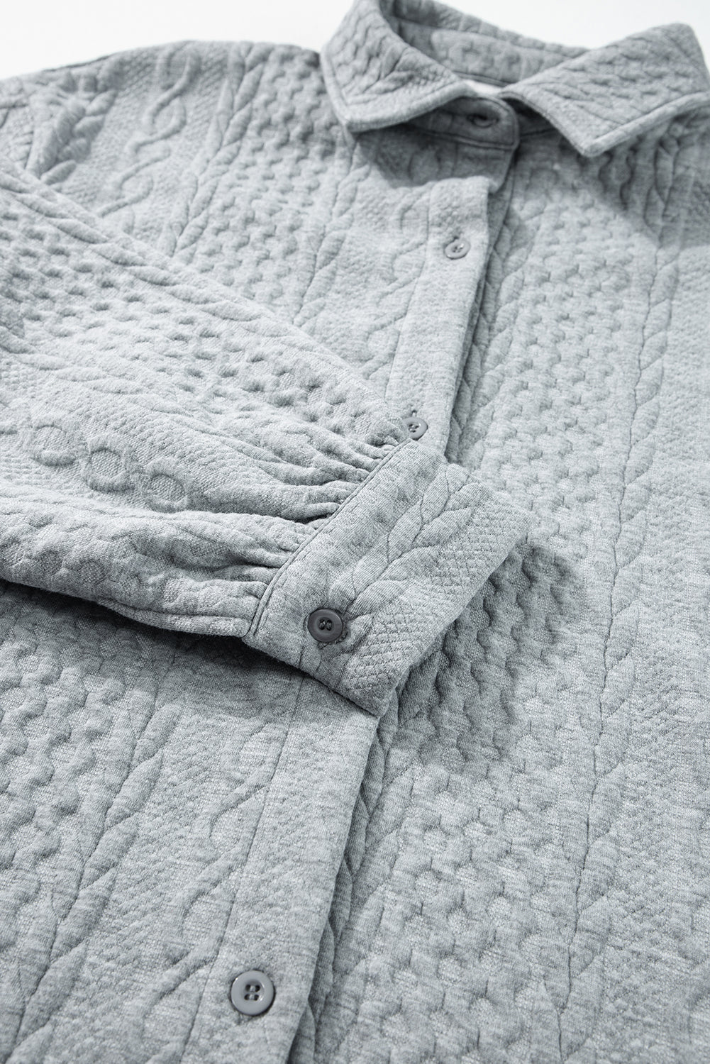 Solid Cable Knit Textured Puff Sleeve Shacket
