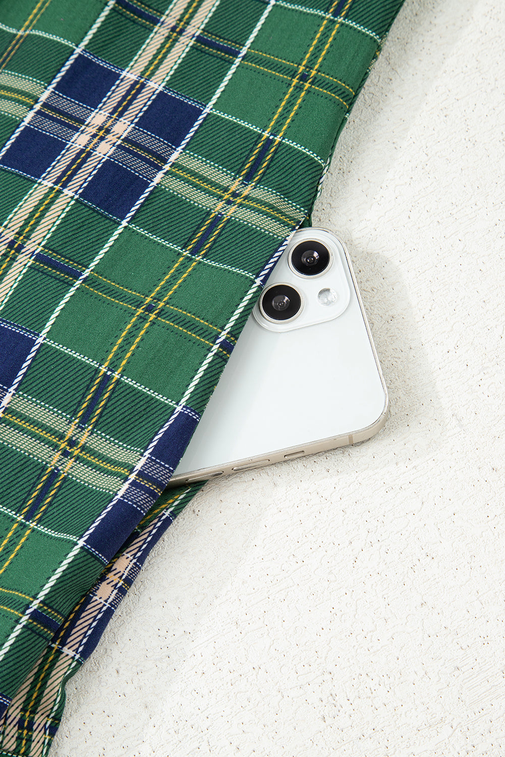 Plaid Collared Neck Ruffle Sleeve Shirt Dress