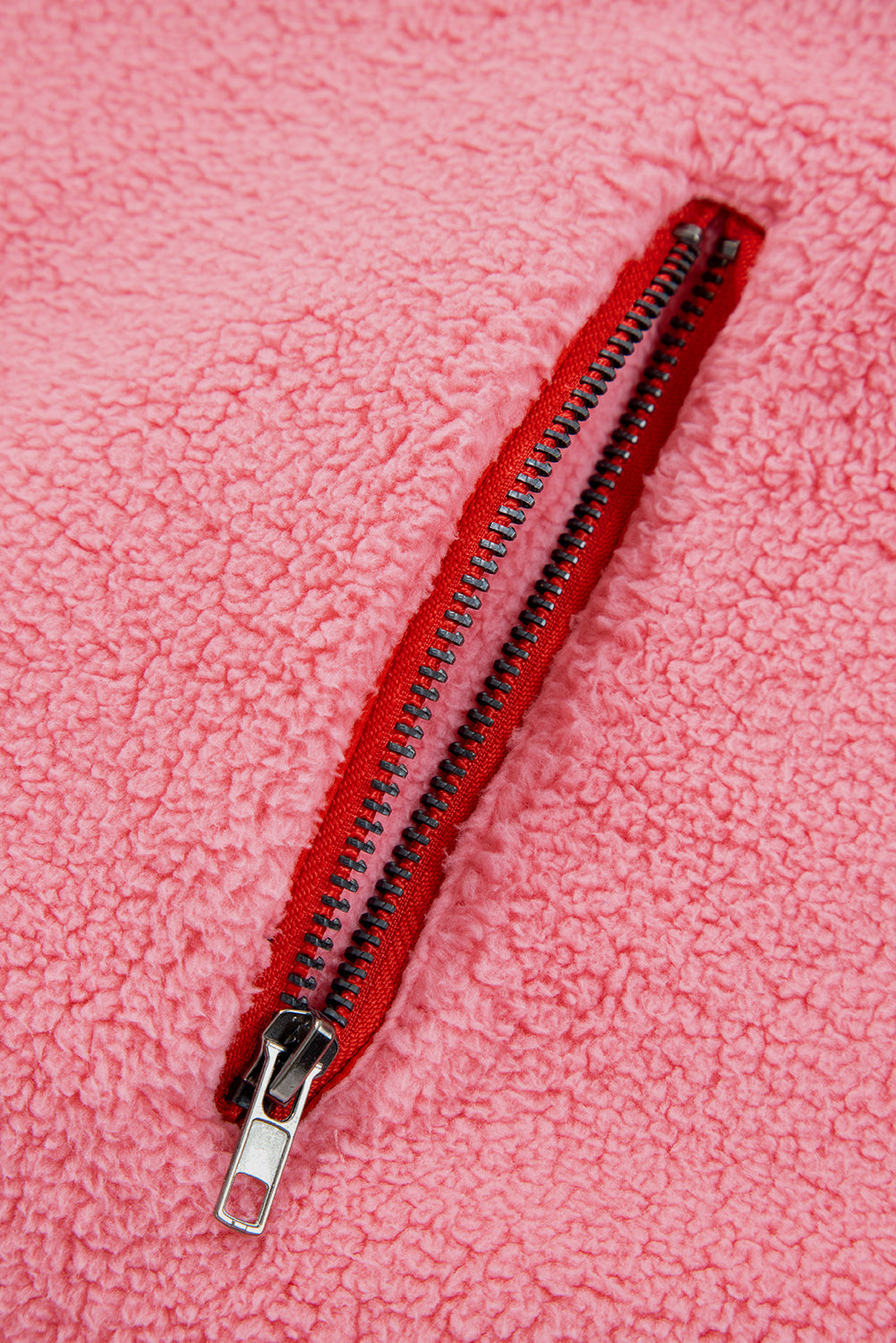 Sherpa Faux Leather Trim Half-Zip Pocketed Sweatshirt