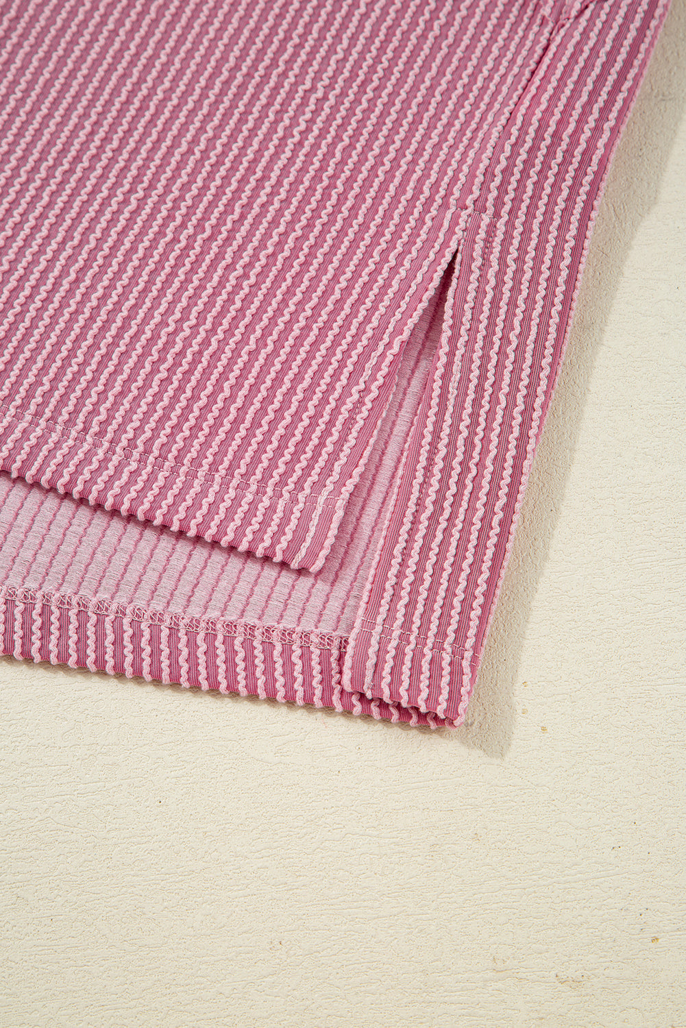 Plus Size Solid Ribbed Reverse Seam Chest Pocket Top