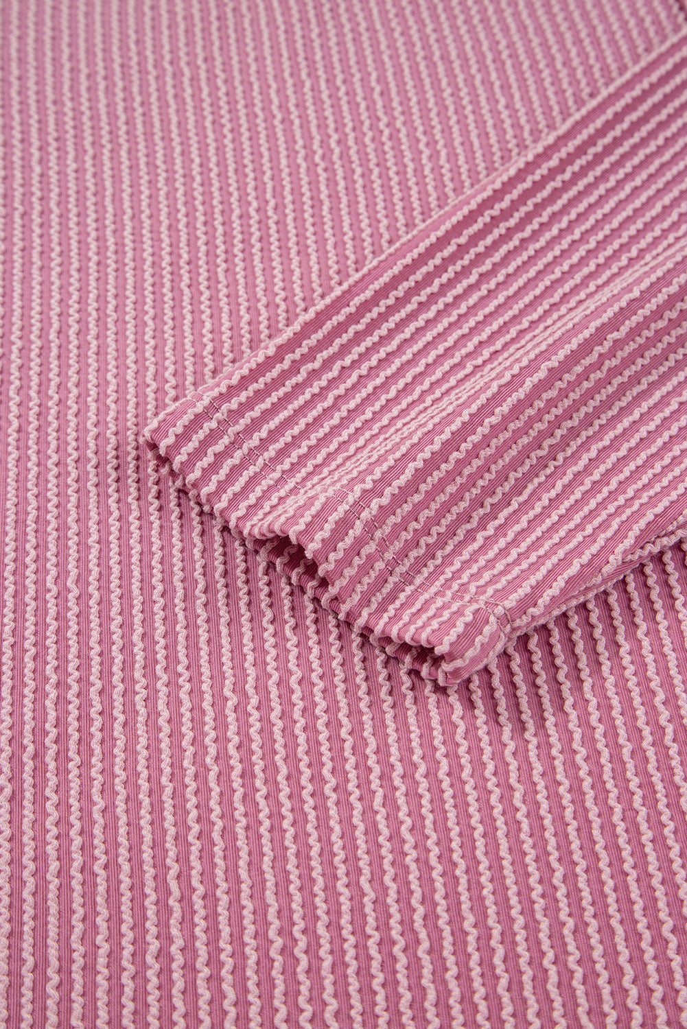 Solid Ribbed Knit Pleated Long Sleeve Top