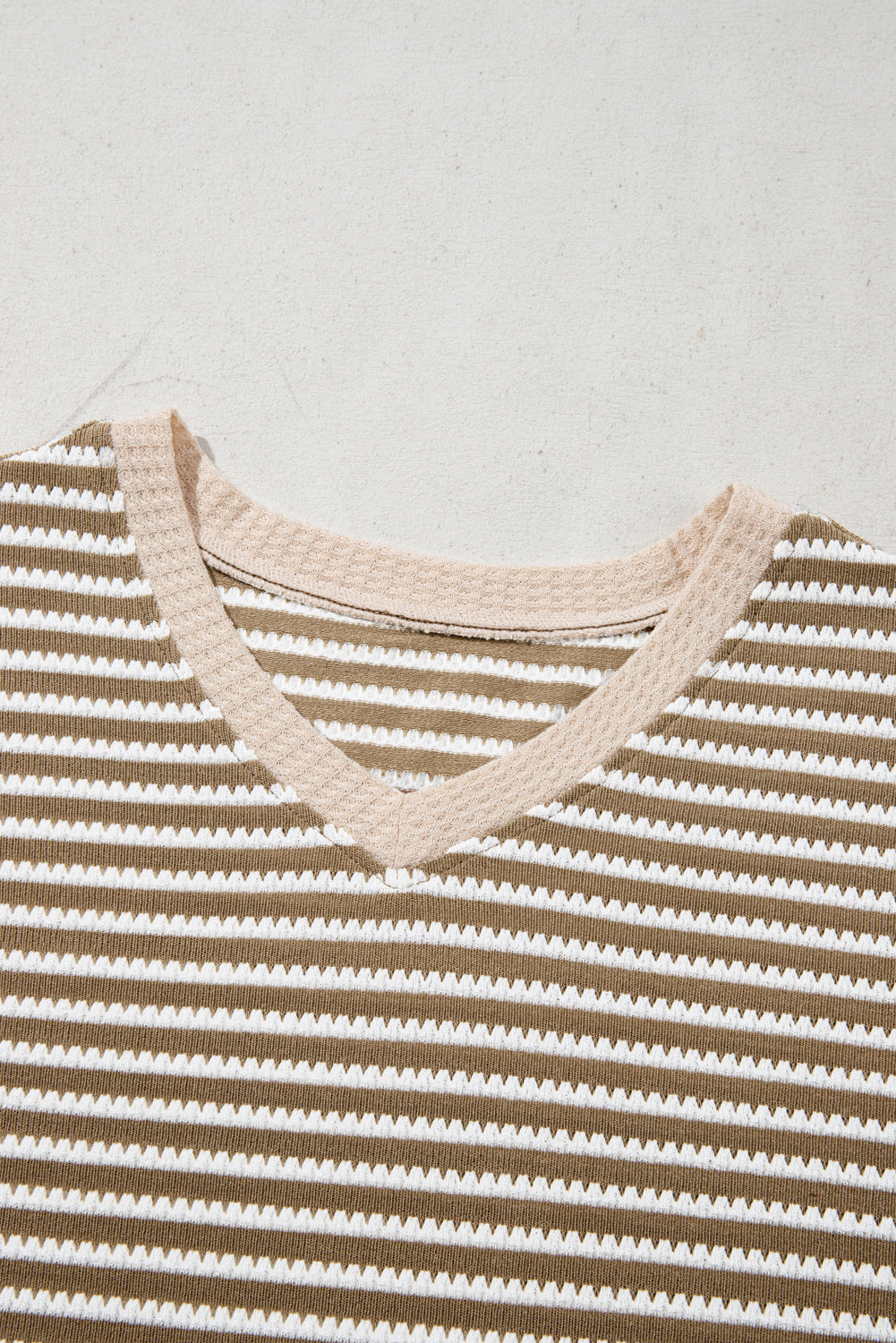 Plus Size Stripe Colorblock Collared Drop Shoulder Top