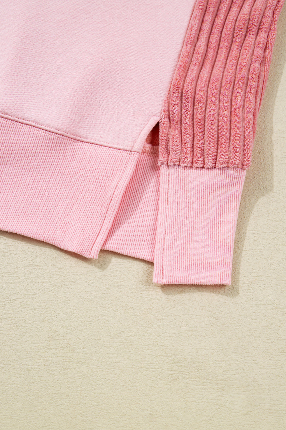 Corded Knit Reverse Seam Patchwork Long Sleeve Top